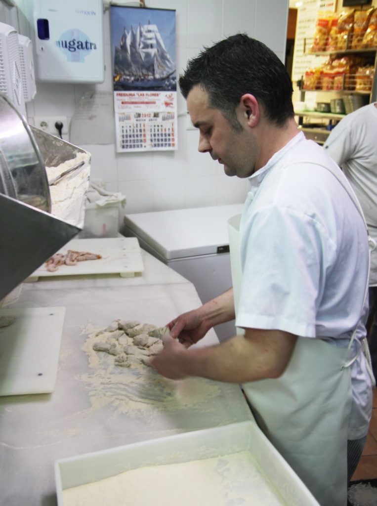ICI). Cette fois nous allons rendre visite au célèbre restaurant « Las Flores » de Cadiz! Les fritures de la ville sont réputées à travers le monde, il ne m’en fallait pas plus pour vouloir aller voir les cuisines et comprendre le secret de ce goût unique! J’ai beau avoir la recette (que le restaurant m’a donnée), je ne la publierai que plus tard…!