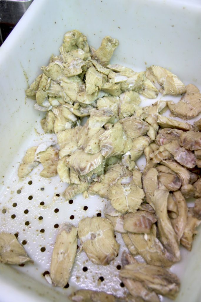 Pour la recette emblématique de la maison, le chien de mer en daube. Du requin donc…! L’avantage: pas d’arrête, juste un « os » central. Pour cette recette il y a également un secret qui se joue dans la marinade… Du citron et des épices!