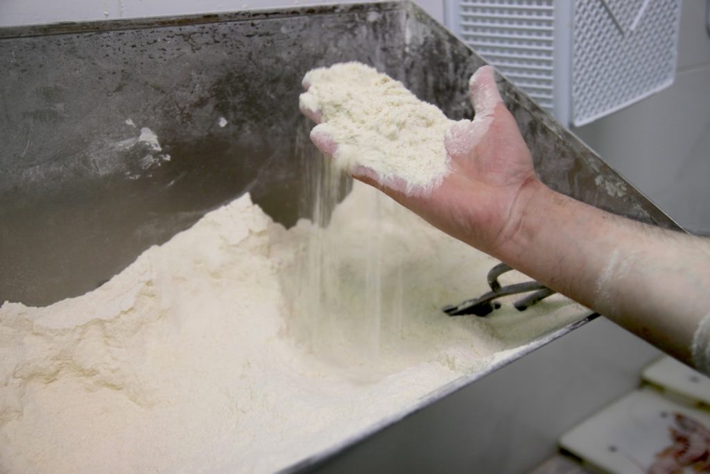 -une farine spéciale à base de farine classique et de semoule fine