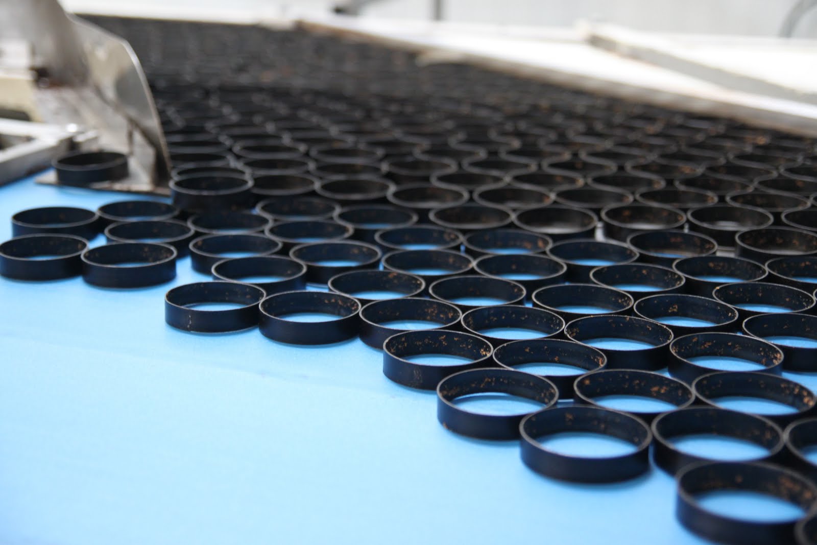 Les cercles sont enlevés par une machine qui aimante ceux-ci par le dessus.