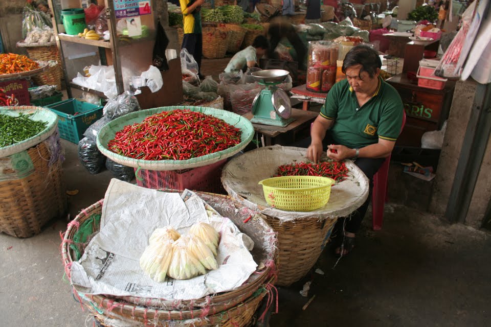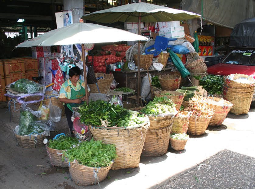 Et voici l’un des marchés de Bangkok vraiment typique, le marché de Thewet, sur la rive du Chao Praya! C’est pour moi le plus authentique de tous! On peut encore trouver de larges paniers en bambou remplis de merveilles de la région.