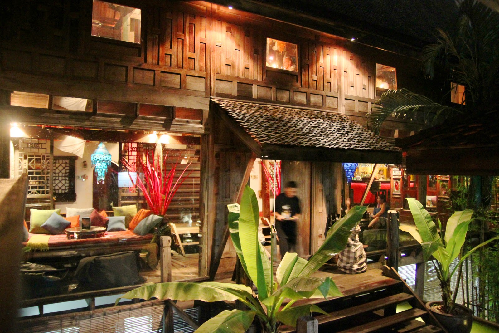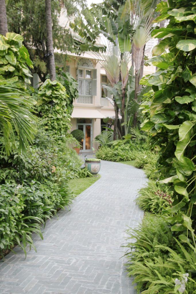On commence notre visite de Bangkok par la maison de Jim Thompson, l’américain qui a repris le prestige de la soie thaï au lendemain de la 2ème guerre. Sa maison est en fait composée d’un assemblage d’anciennes maisons thaïes, organisées autour d’un typique jardin tropical. La maison est remplie d’antiquités absolument divines et joliment présentées, mais ici, sur mon site, notre intérêt nous amène plutôt… au restaurant du musée!