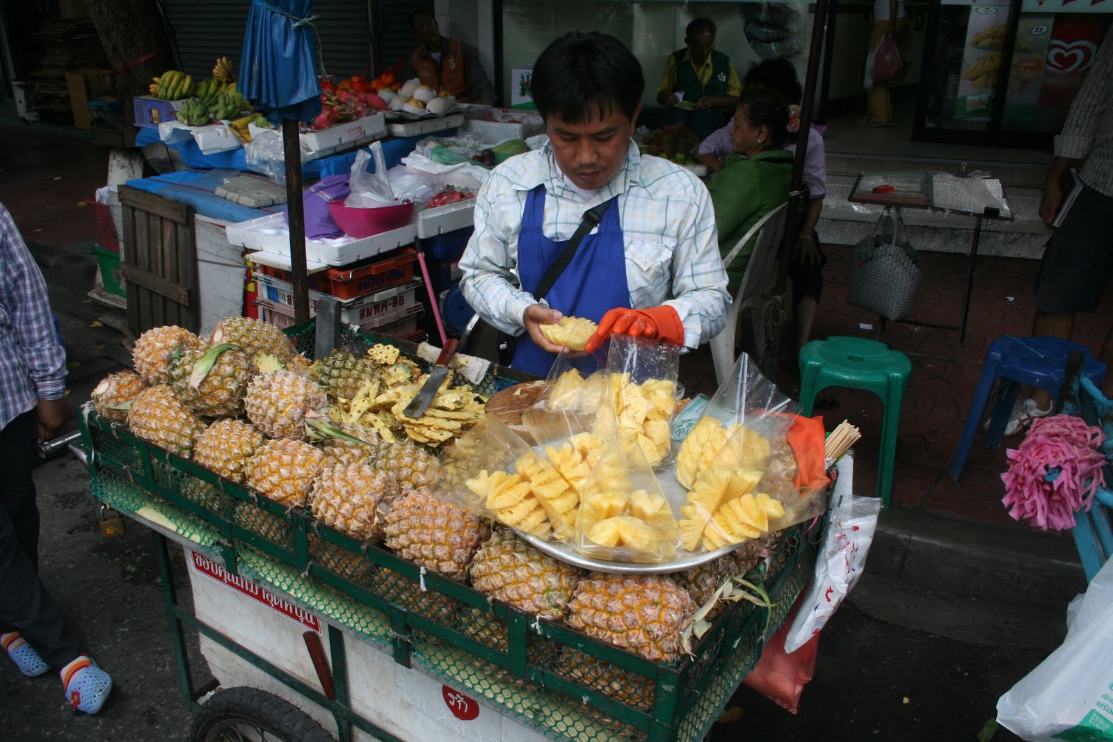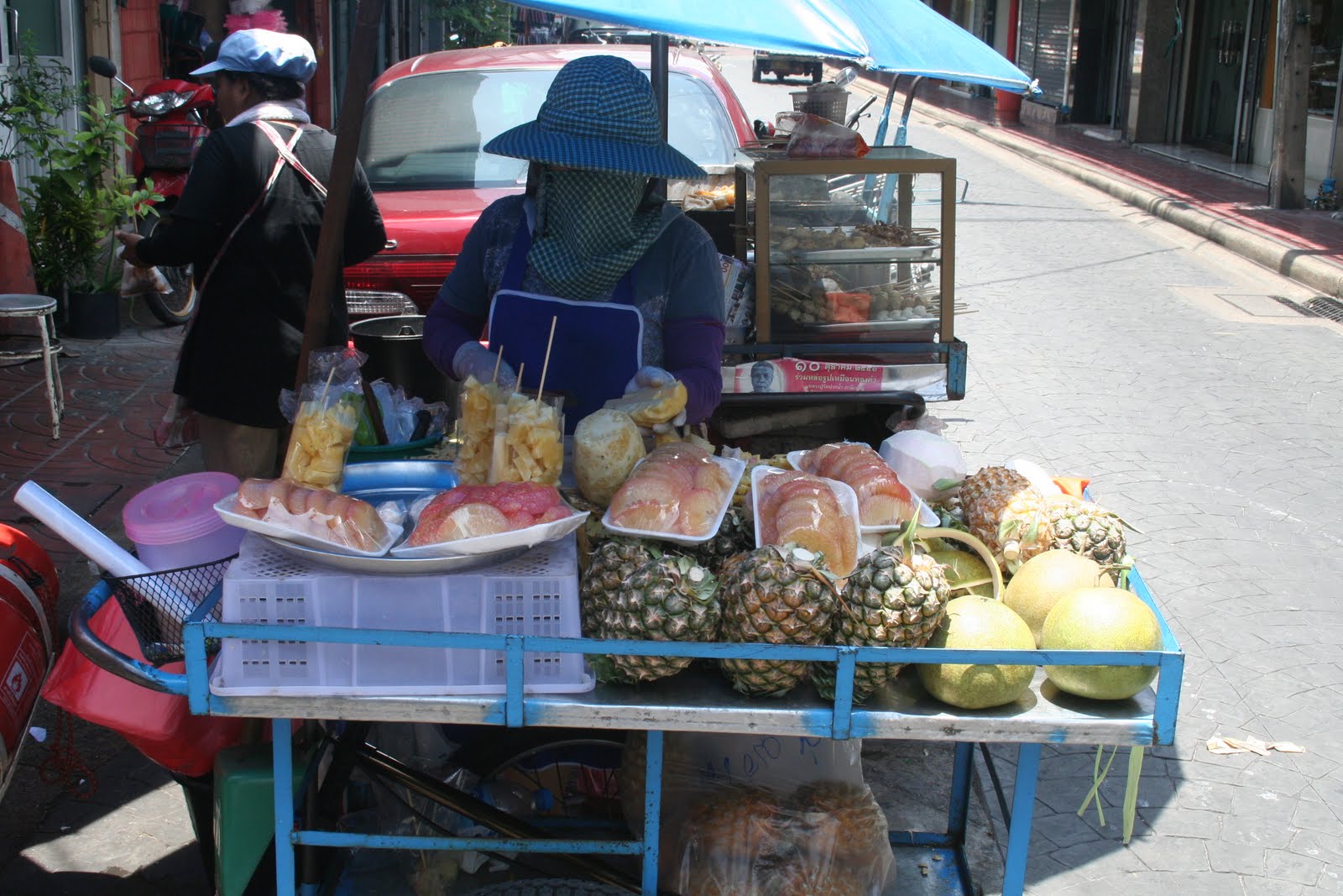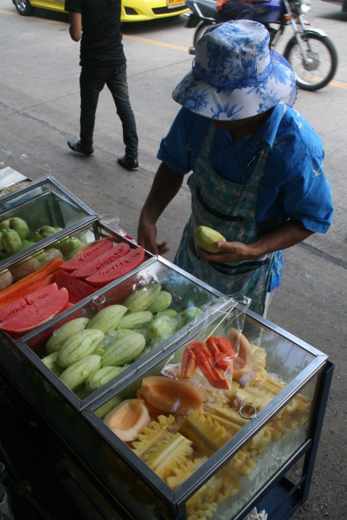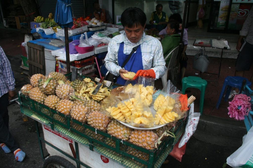 Dans toutes les rues de Bangkok, on trouve des vendeurs de fruits tranchés et je ne suis jamais tombé malade malgré la quantité de pomélo ou d’ananas ingurgitée!