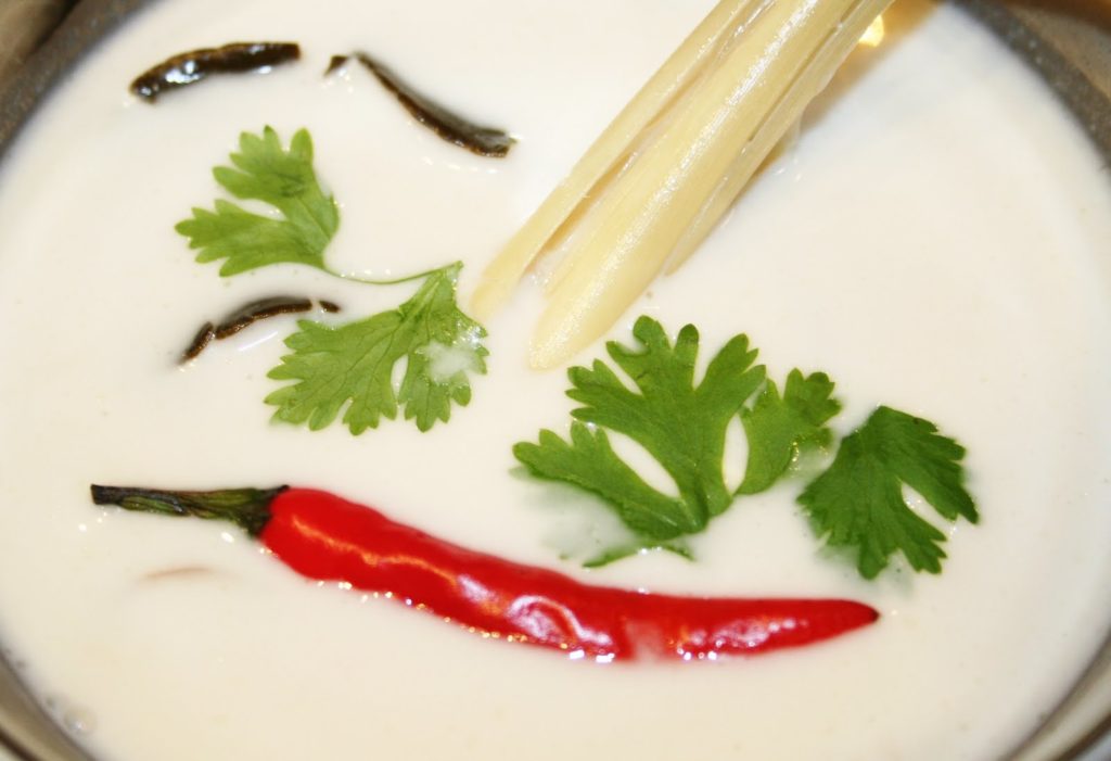 Pour le dessert, un simple bol de crème de coco chaude et sucrée à la banane fondante.