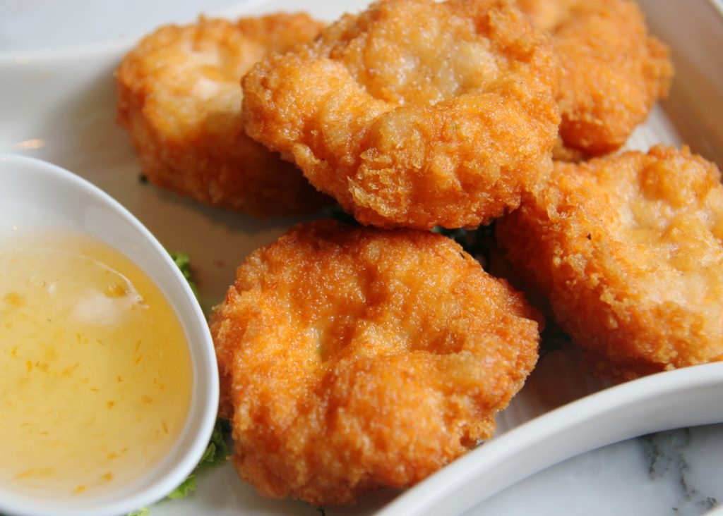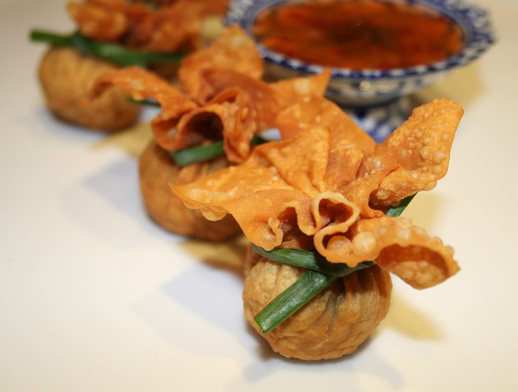 En entrée, des « golden bags » au porc que l’on trempe dans une sauce sucrée et pimentée.