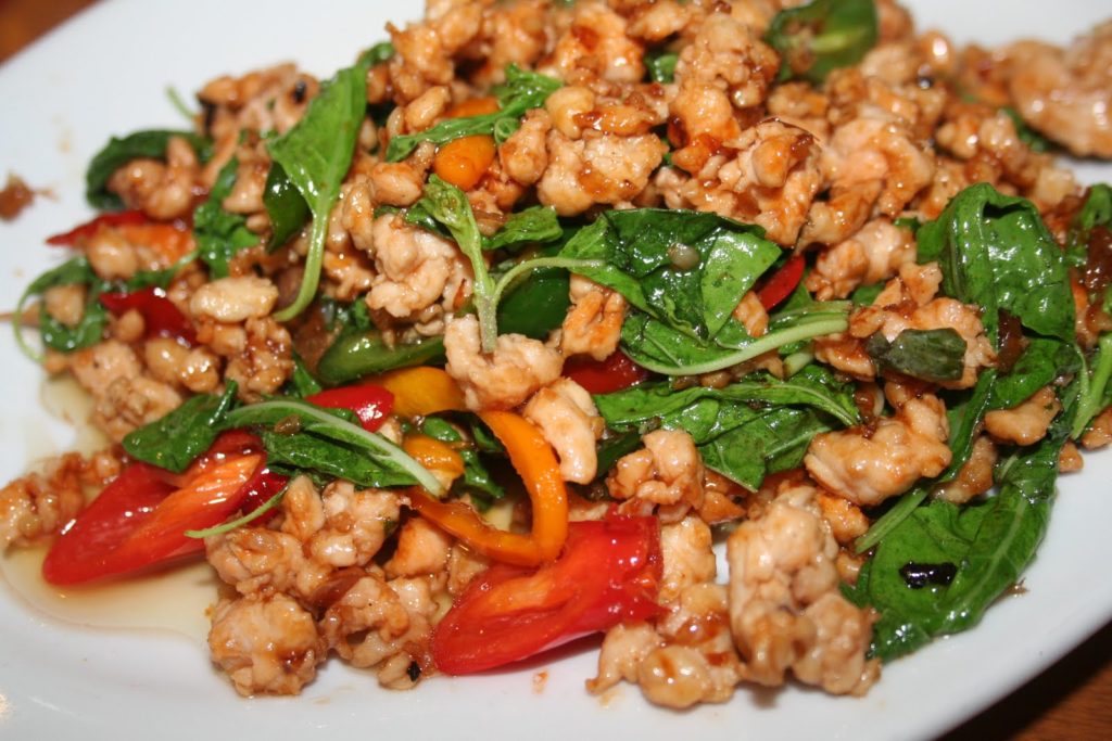 Et un très bon mais très fort poulet sauté aux piments et feuilles de basilic thaïe…