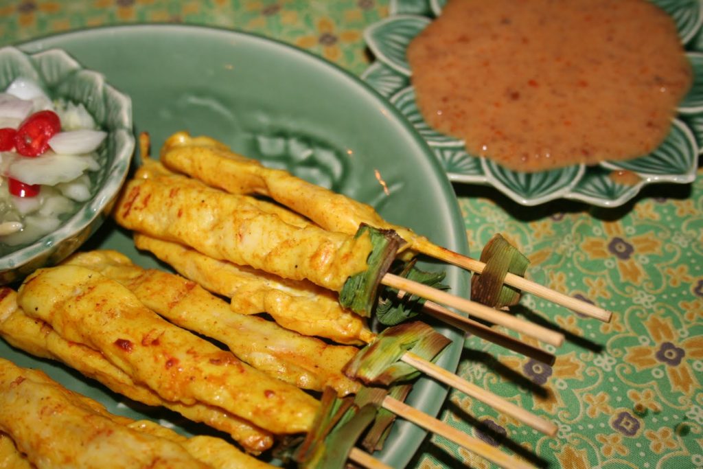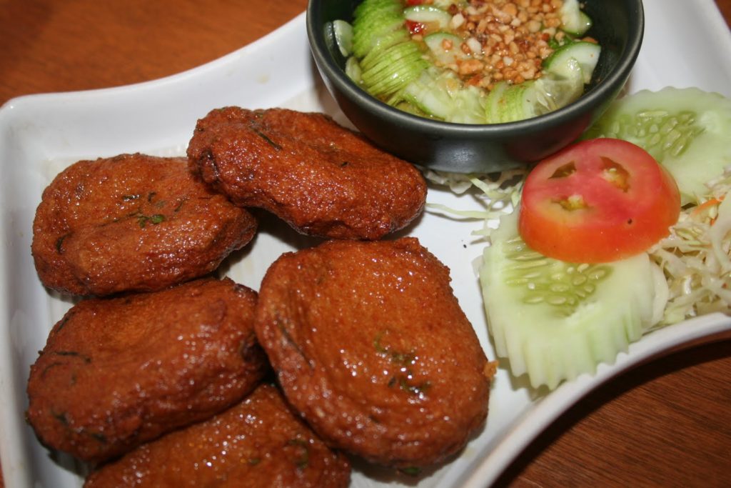 Pour mon dernier repas, des petites galettes molles au poisson et feuilles de kaffir à la pâte de curry rouge, les « Tod Man Plah »…