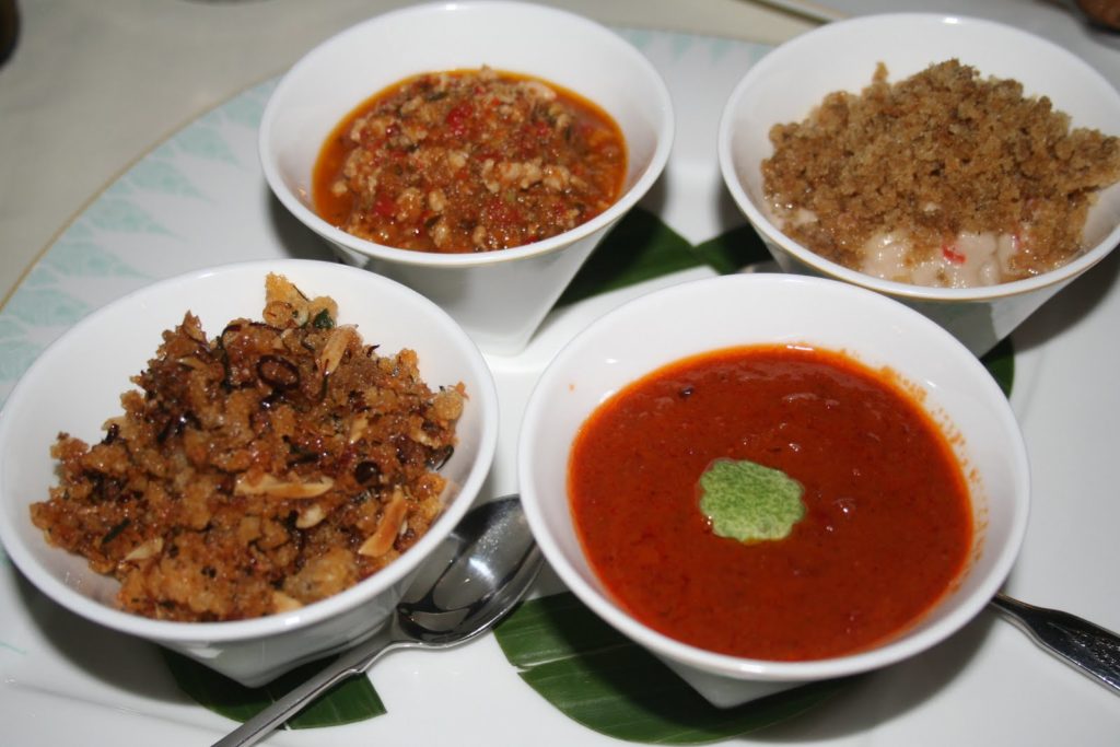 Avec en entrée, un assortiment de petits plats très parfumés où l’on trempe des légumes, poissons, omelettes et feuilles fraîches…