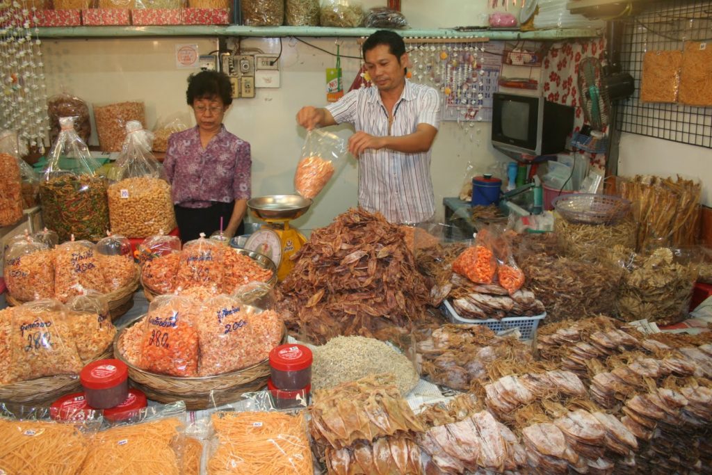 Comme partout en Asie, les fruits de mer sont vendus frais mais également séchés!