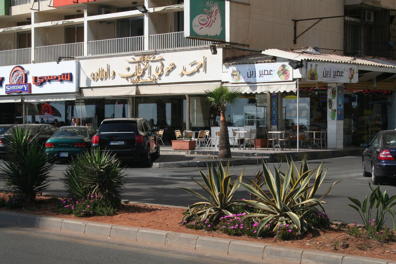 Ce n’est sans doute pas LA meilleure pâtisserie de Beyrouth, mais en tout cas c’était exactement ce que je voulais. Sous un soleil de plomb, je trouve enfin la fraîcheur de cette boutique. On peut voir le nom de la pâtisserie sur la devanture mais je suis totalement incapable de la lire (je ne lis pas encore l’arabe!).