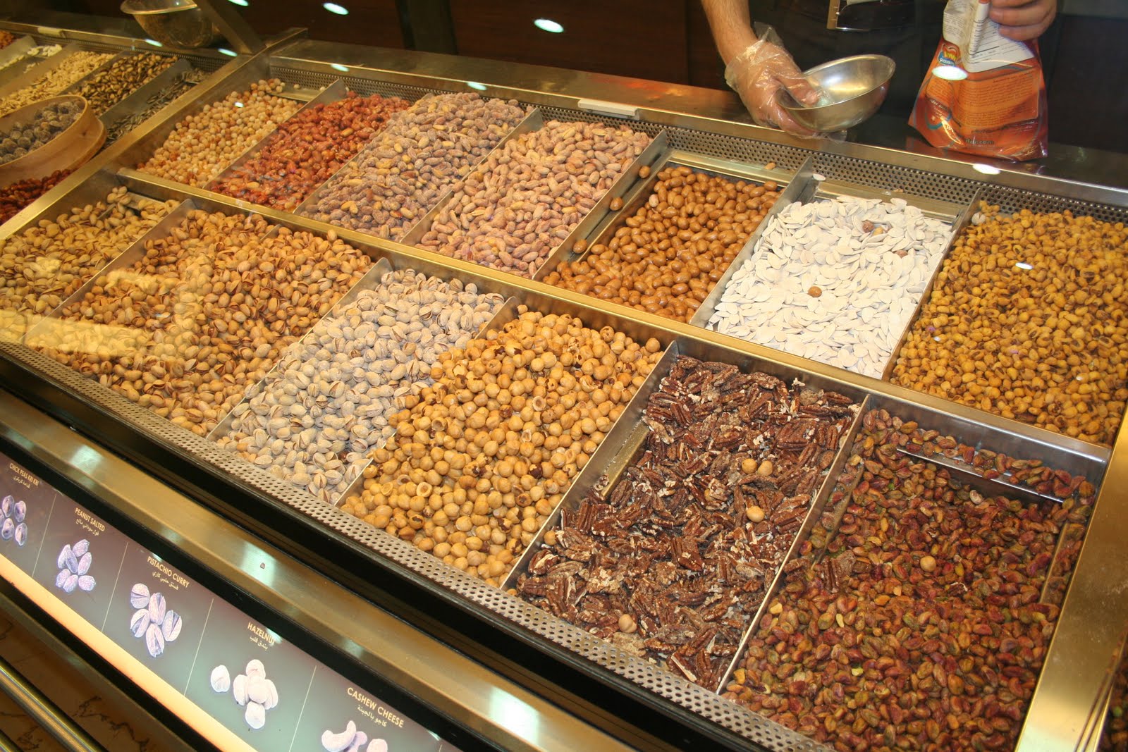 Et surtout (!!) les noix, pistaches, mélanges divers vendus au kilo… Je ne sais pas pour vous, mais je n’ai pas pu résister!!!