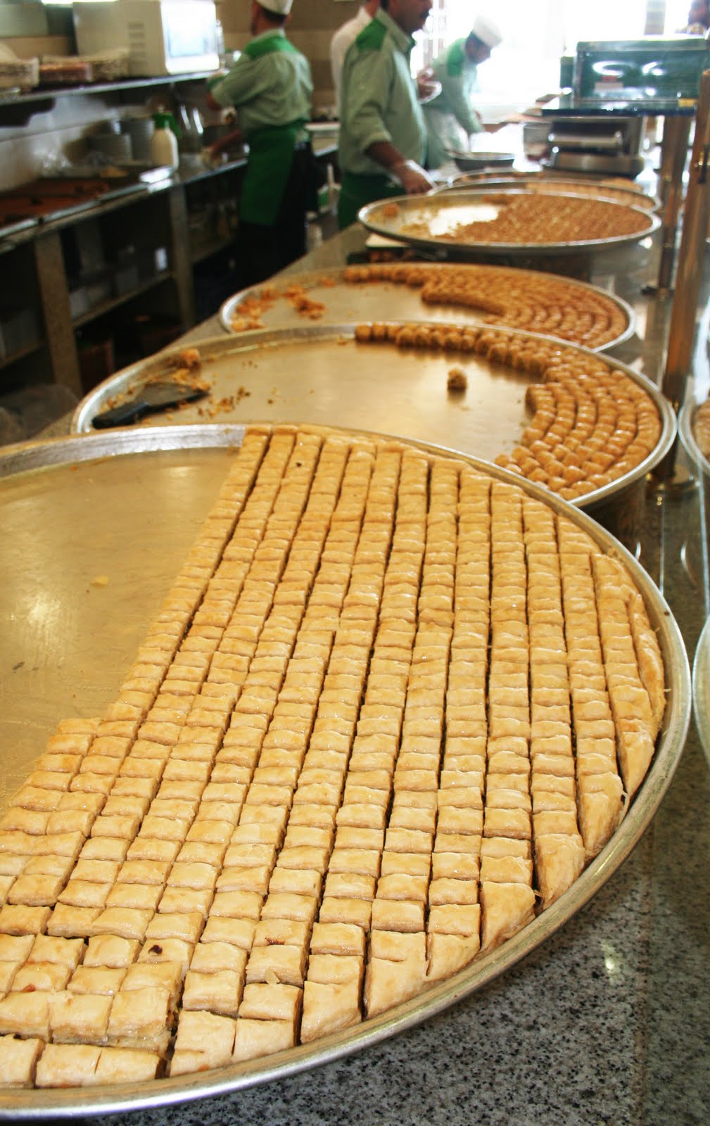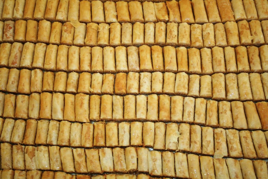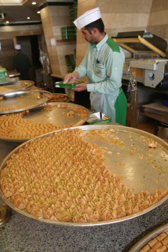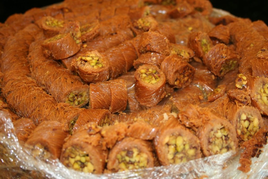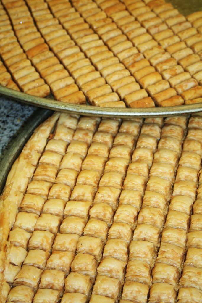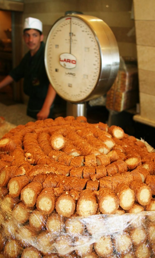 Les feuilletés sont aux noix de cajou, aux amandes, aux pistache. Il y en a une telle variété, que j’en avais la tête qui tournait! Malheureusement je n’ai pas eu le droit d’accéder aux cuisines. Mais je ne perds pas espoir et je vais me renseigner pour un stage de cuisine libanaise à Beyrouth quand j’aurai le temps!!