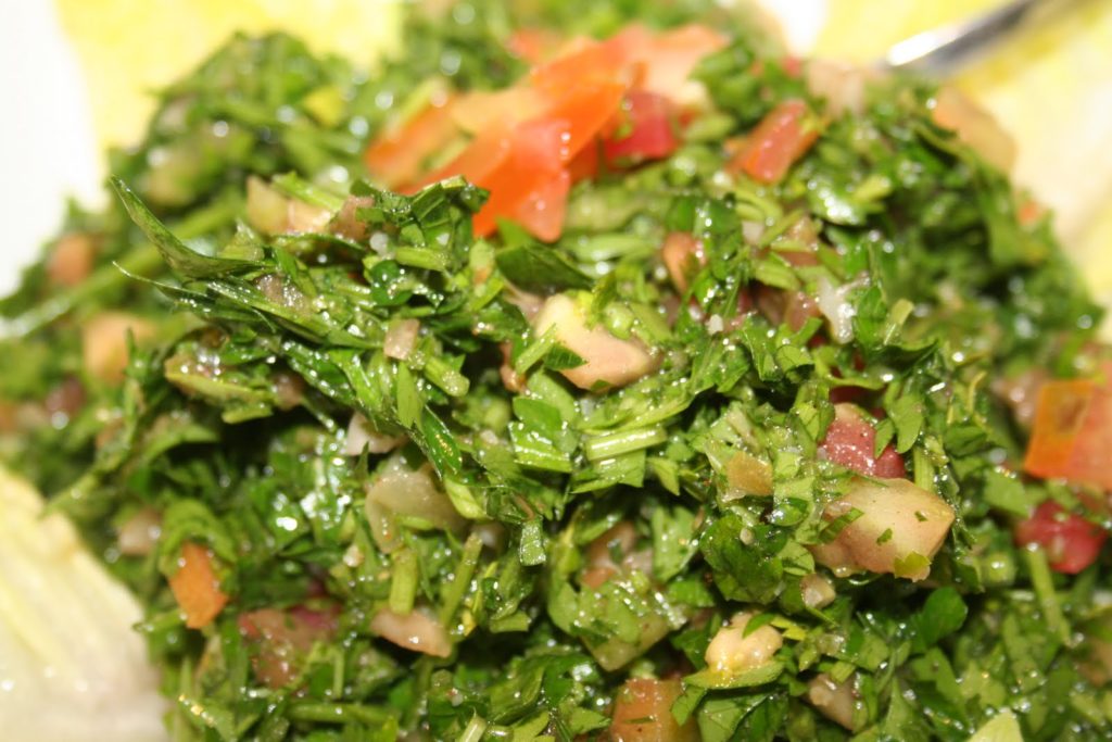 Le célèbre « taboulé » lianais, qui se rapproche plus d’une salade de persil plat avec de la tomates, des aromates et un tout petit peu de semoule, voir pas du tout.