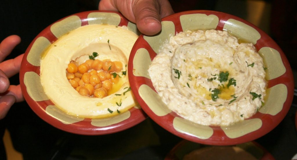 Parmi ceux-ci le célèbre « hoummos (pour lire ma recette de hoummos cliquer ici) purée de pois chiches à la crème de sésame et huile d’olive et le « moutabal », purée d’aubergines grillées à la crème de sésame et huile d’olive.