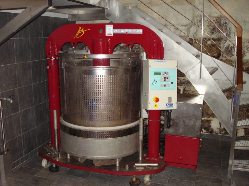 Une presse imposante pour récuperer le vin de marc qui se trouve en surface.