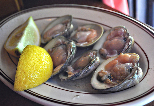Il y a surtout dans ce restaurant des fruits de mer comme ces coques servies crues…