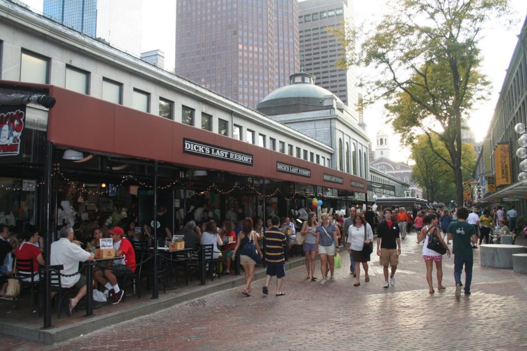 Tout le quartier autour de Quincy Market est très vivant. Beaucoup de restaurants l’entourent.