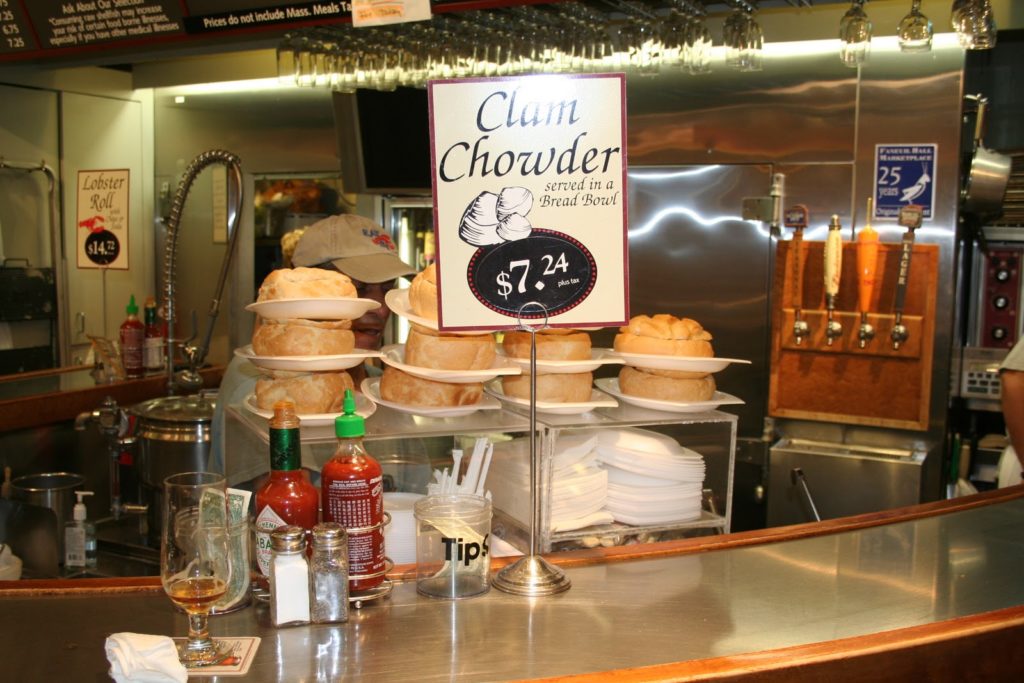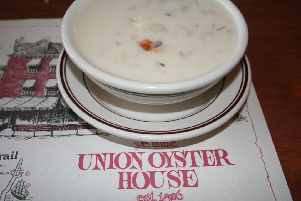 Nous voici cette fois-ci à Boston dans le Massachusetts dans la région de la Nouvelle Angleterre. Au programme de mon court séjour, un repas dans le plus restaurant de Boston, le « Union Oyster House » puis une visite des marchés « Haymarket » et « Quincy Market »… Vous découvrirez la célèbre soupe de palourdes, la « clam chowder » et les « crabcakes »même si ceux-ci viennent du Maryland. Je vous invite par ailleurs à venir découvrir le site de Thomas qui habite à Boston, Cure Happiness (celui-ci est en anglais), qui a eu la gentillesse de m’indiquer de bonnes adresses sur place!