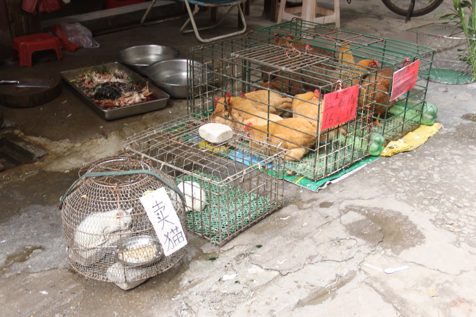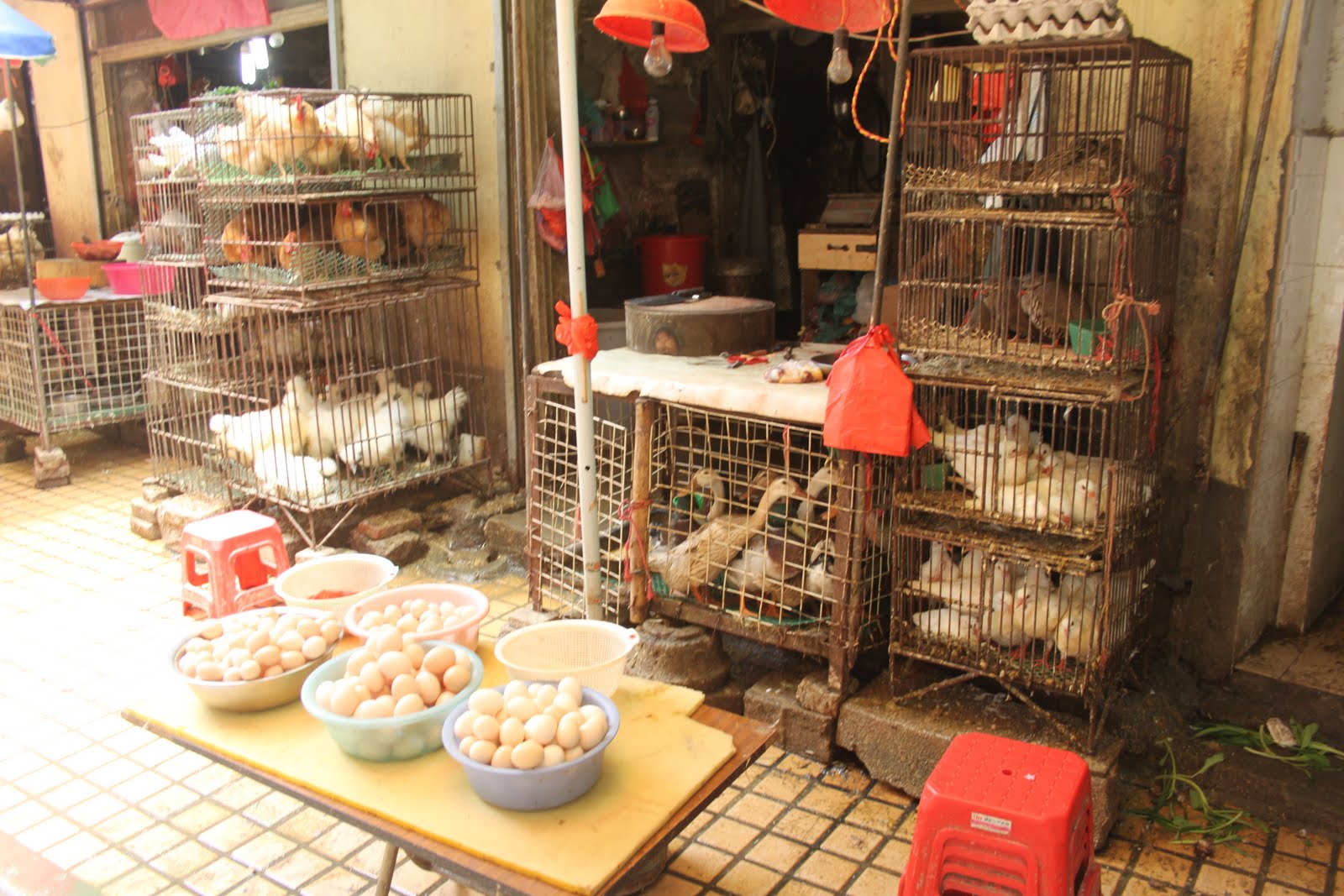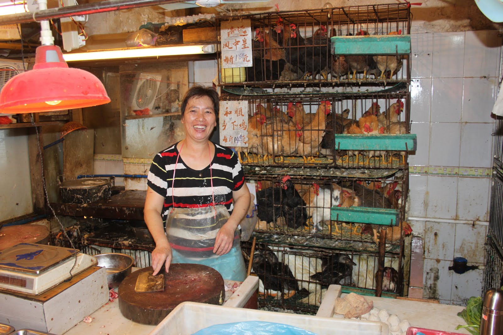 Les cantonnais sont toujours ravis de poser pour les photos, même si c’est un véritable film d’horreur qui se joue devant les pauvres poules!