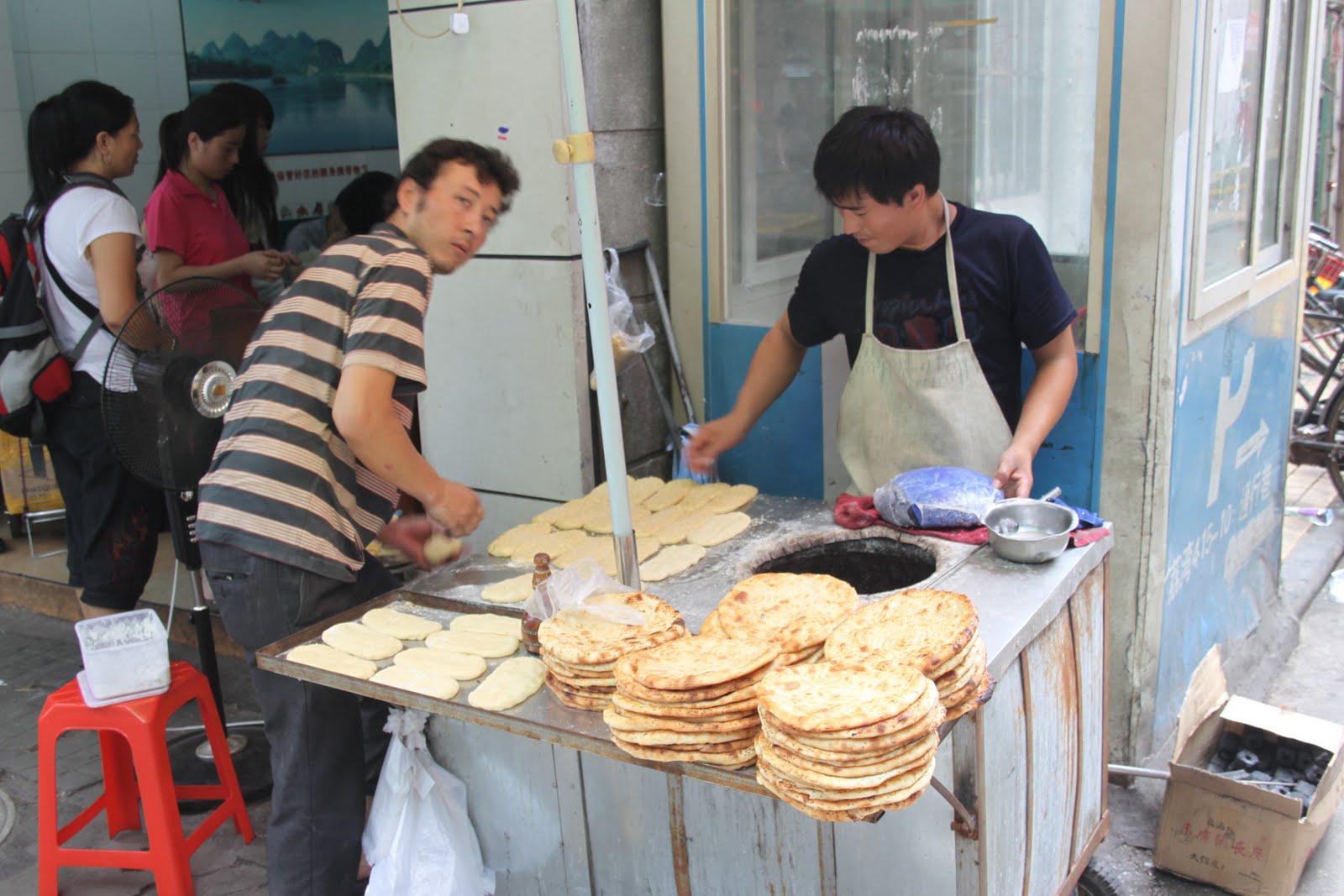 Des vendeurs de crêpes salées type « naans » indiens.