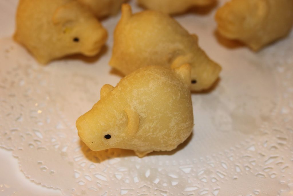 Au menu, j’ai choisi ces drôles et délicieux petits cochons frits.