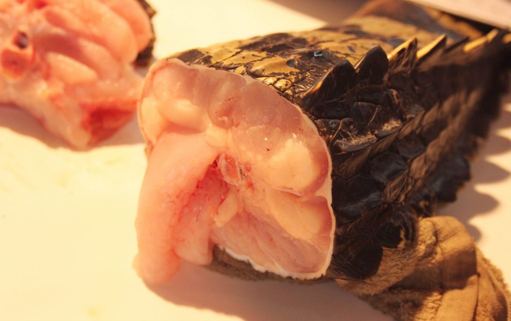 Nous y voilà. Le marché aux bestioles bizarres. En regardant de près, la queue de crocodile ressemble beaucoup à de la lotte.