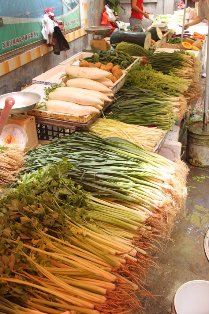 Ce stand propose un choix monumental d’oignons (ou ciboules) chinois.