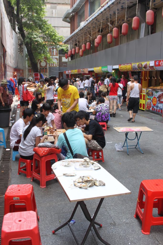 Des « food courts » où chacun achète ce qui lui plait et retrouve ensuite ses amis pour manger. Les chinois adorent manger à plusieurs.