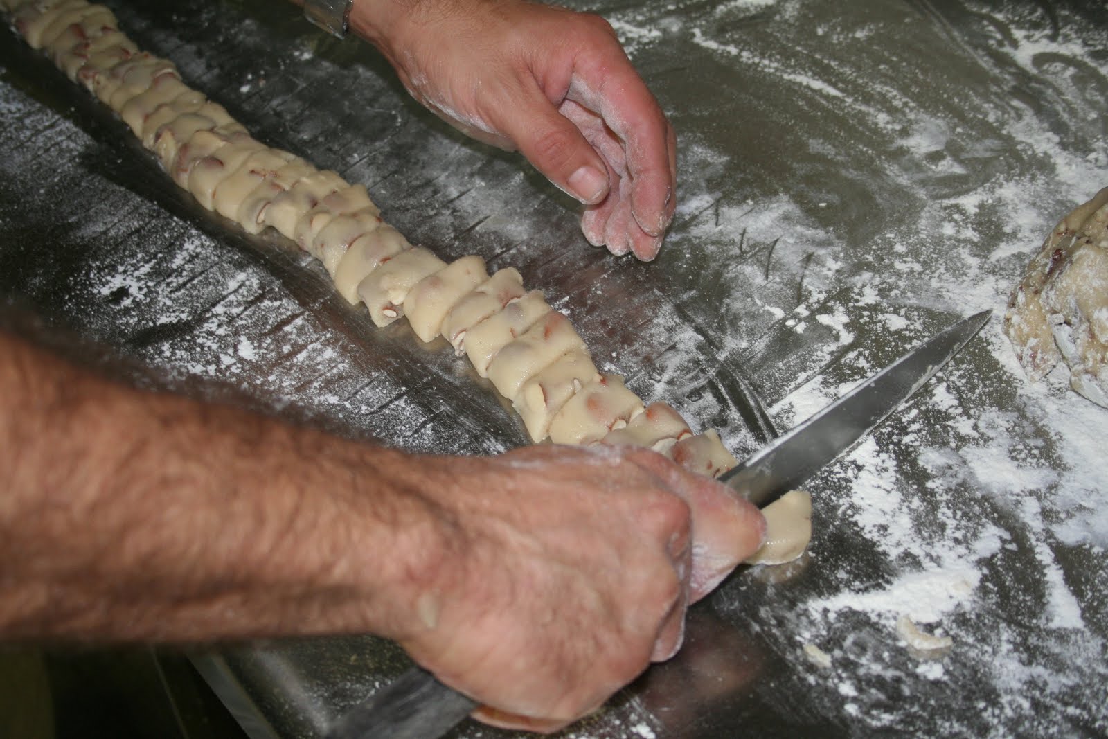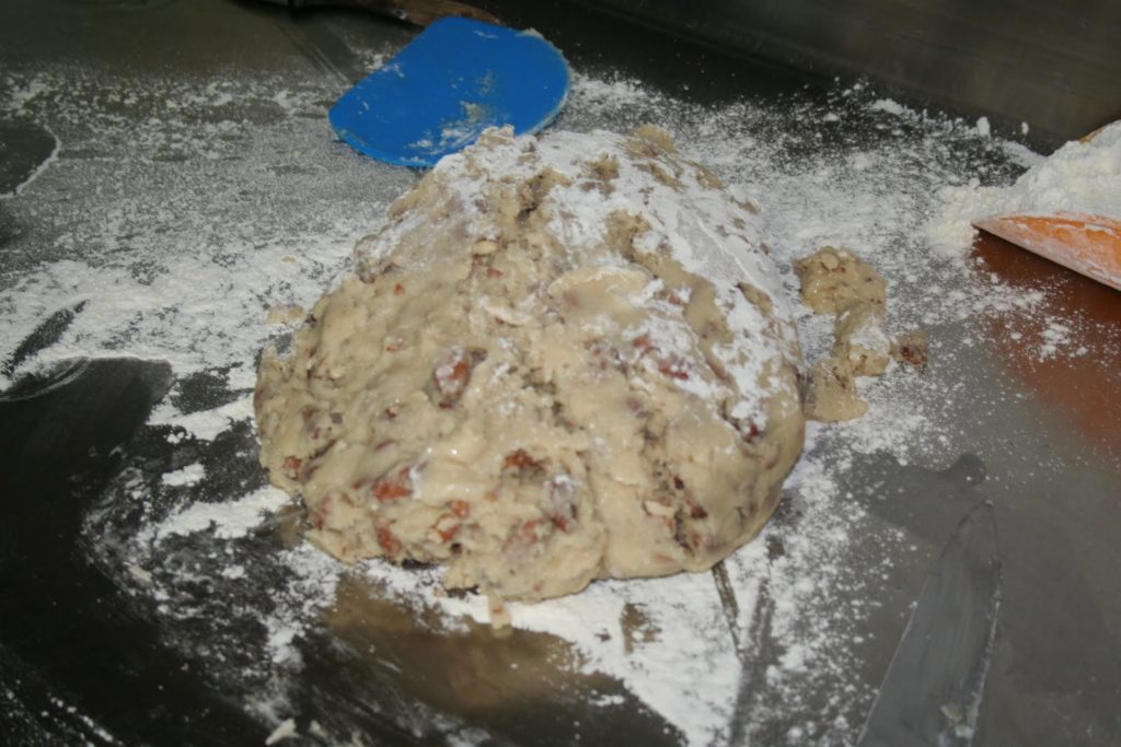 Il suffit maintenant à Patrick de rouler la pâte en un boudin assez fin.