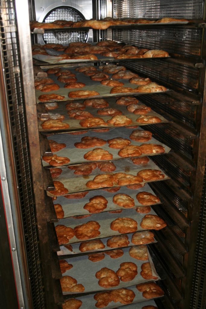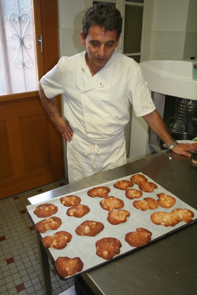 Patrick devant la création familiale. Quel plaisir de l’entendre parler de la façon dont les croquants « chantent » à la sortie du four! C’est vrai qu’ils craquent et sifflent, on dirait qu’ils veulent nous révéler leur secret!