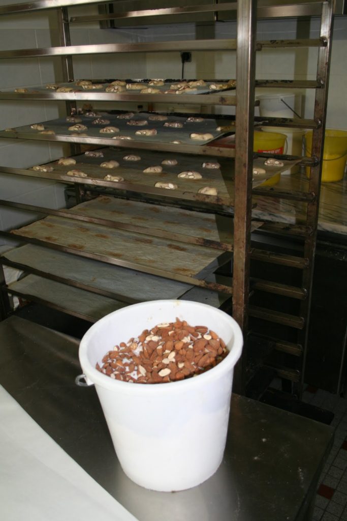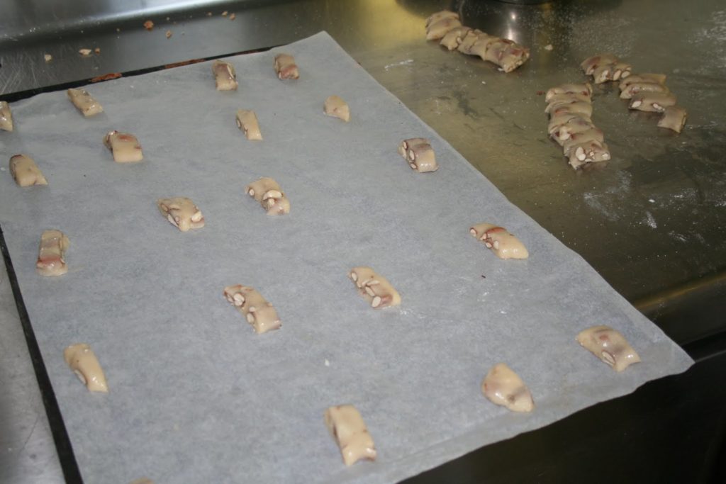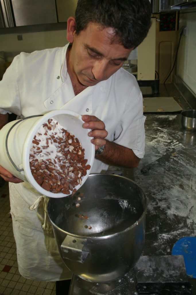 Une fois dans le sous-sol de la boutique (http://www.maisonandrieu.fr/) dans la rue principale, au 6 Grand Rue de l’Horloge de Cordes sur Ciel, j’ai eu le plaisir d’assister à la confection des célèbres croquants! Les ingrédients sont prêts, déjà pesés! Une recette simple et presque magique…