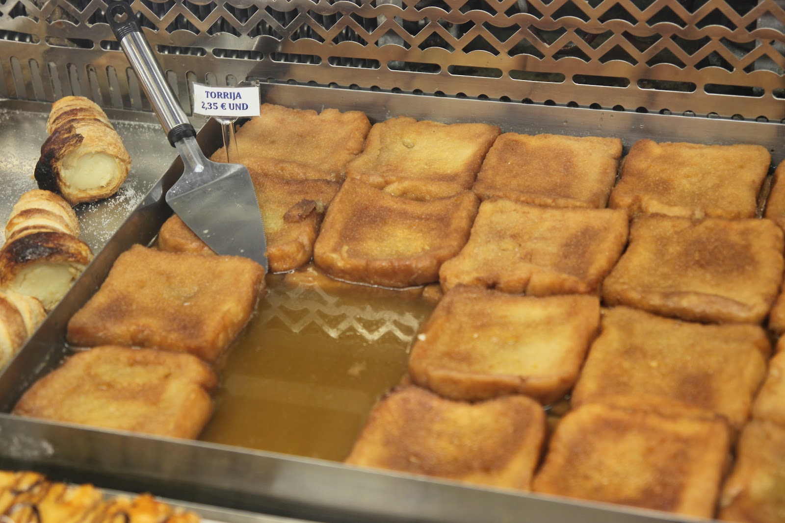 Une autre spécialité: le « torrija ». Une sorte de pain perdu trempé dans un sirop de miel et de sucre. On voit là, qu’on se rapproche des pâtisseries nord africaines. L’une et l’autre se sont influencées au cours des siècles et on retrouve beaucoup de similitudes.