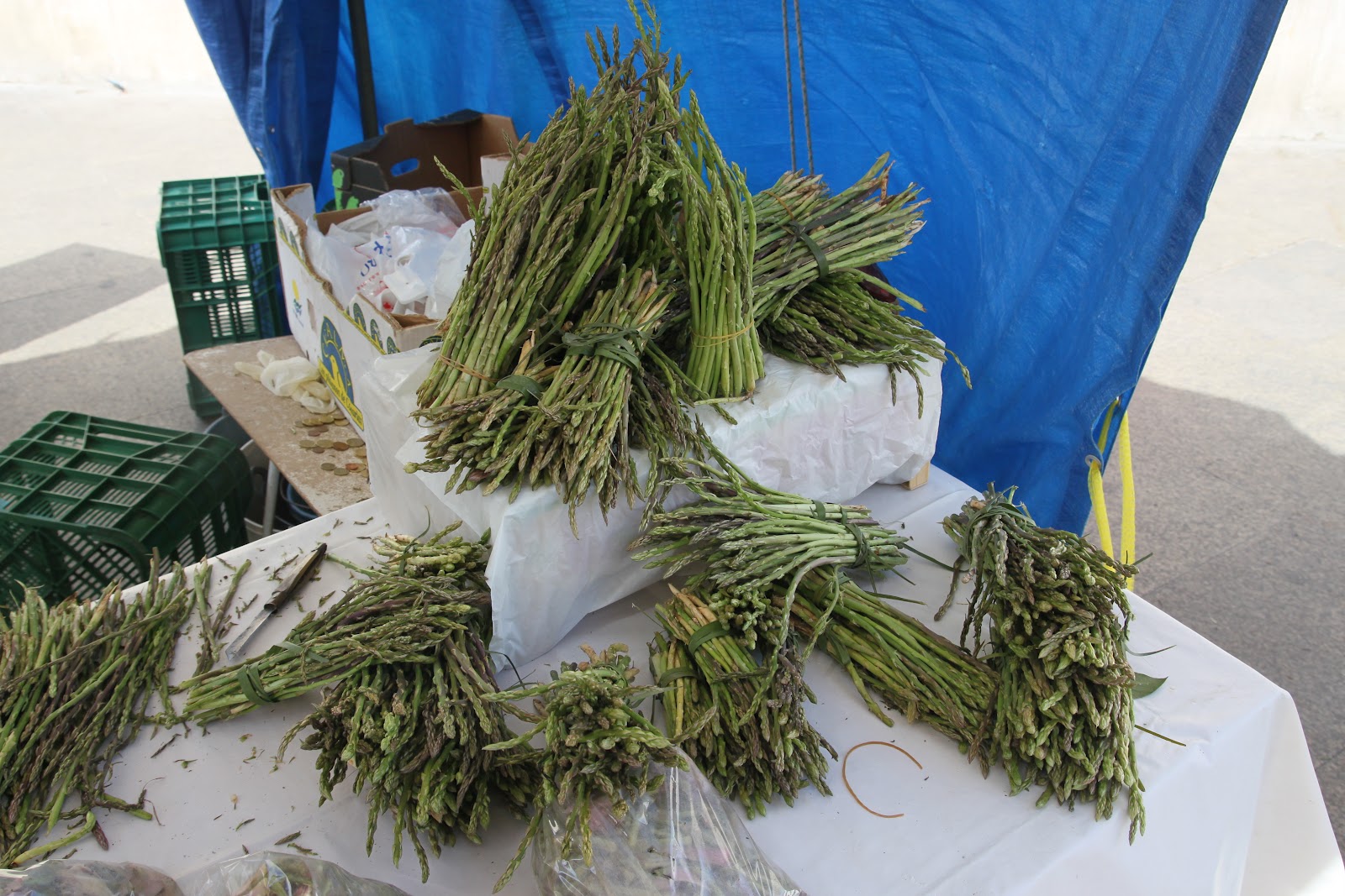 On y trouve l’asperge sauvage que nous reverrons plus tard. Nous ne traînons pas longtemps dans ce marché, car il y en a plein d’autres à faire…