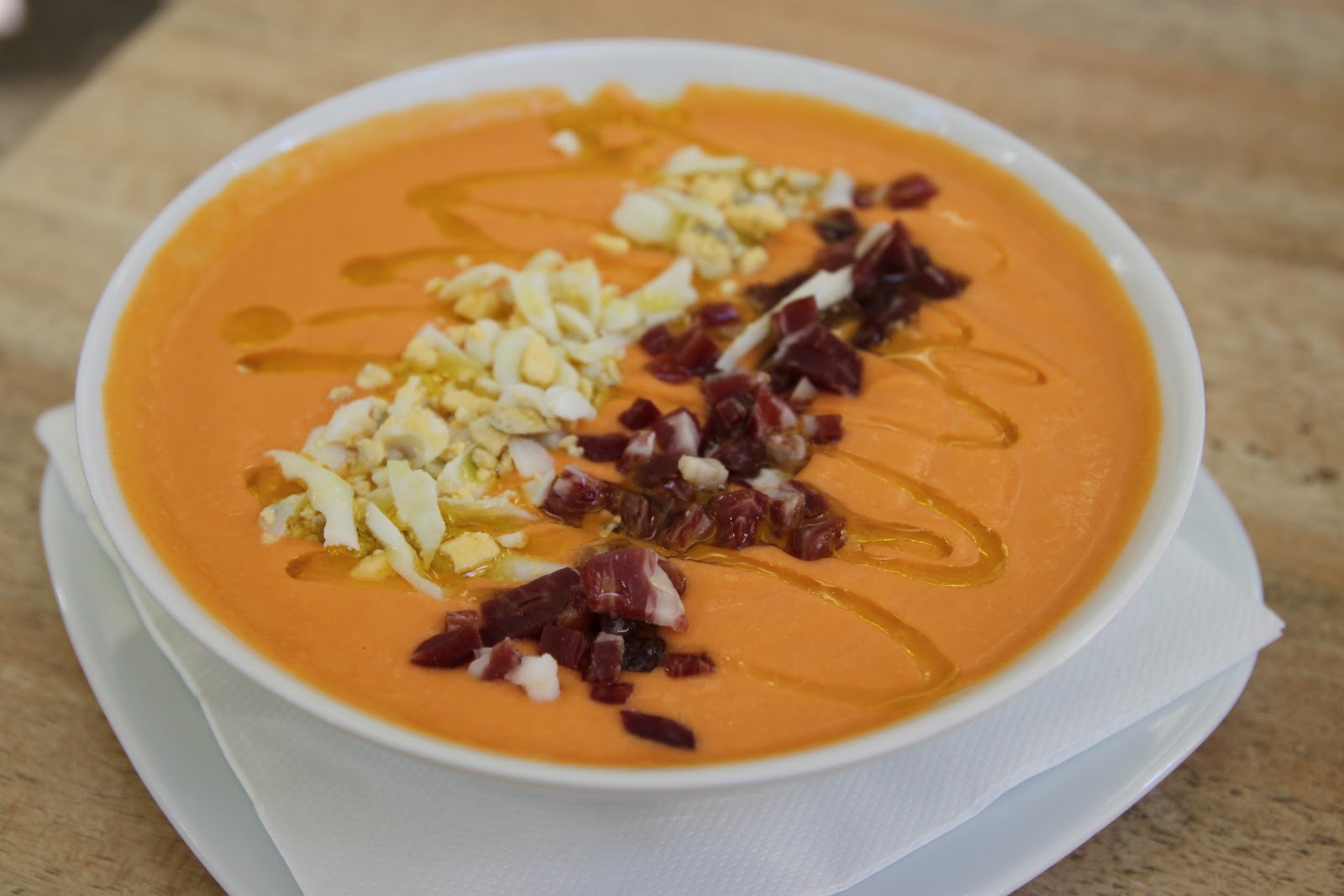 Une pause déjeuner à l’ombre pour un salmorejo bien frais avec plein de jambon. Aïe aïe aïe!