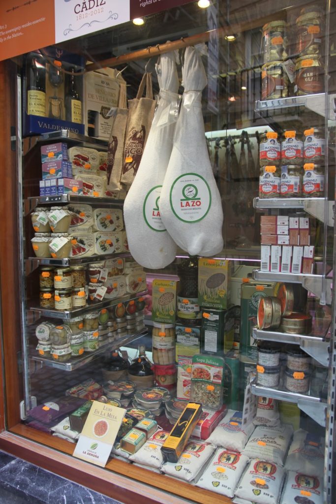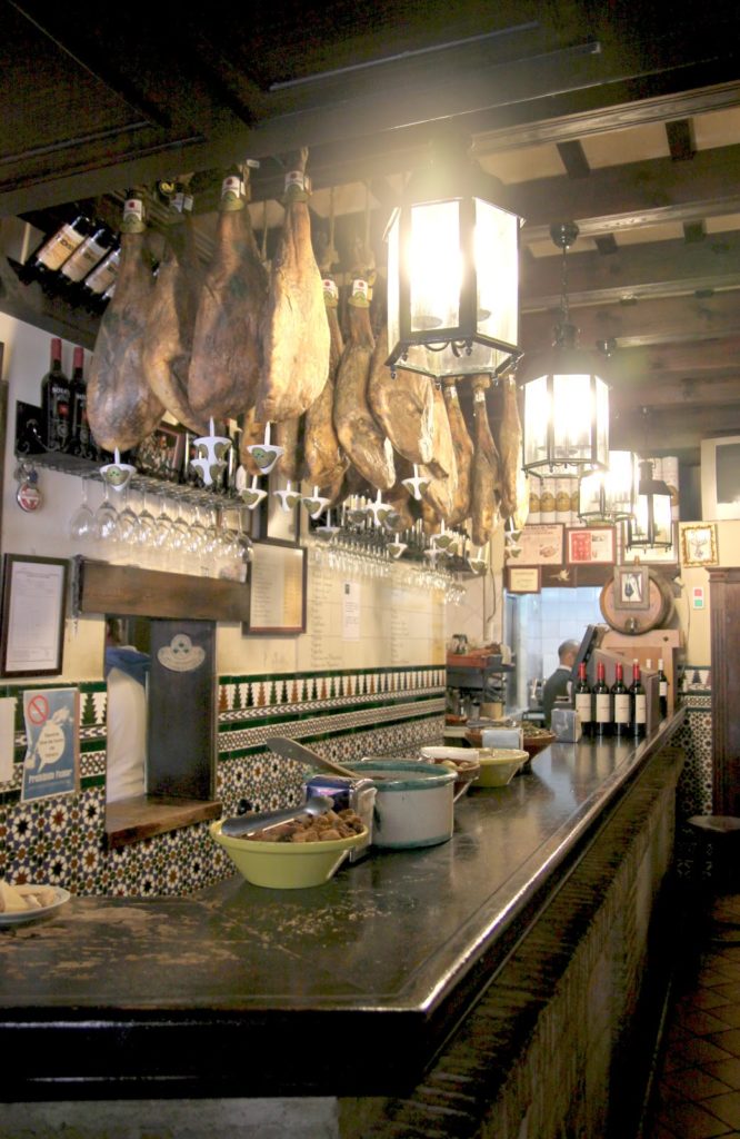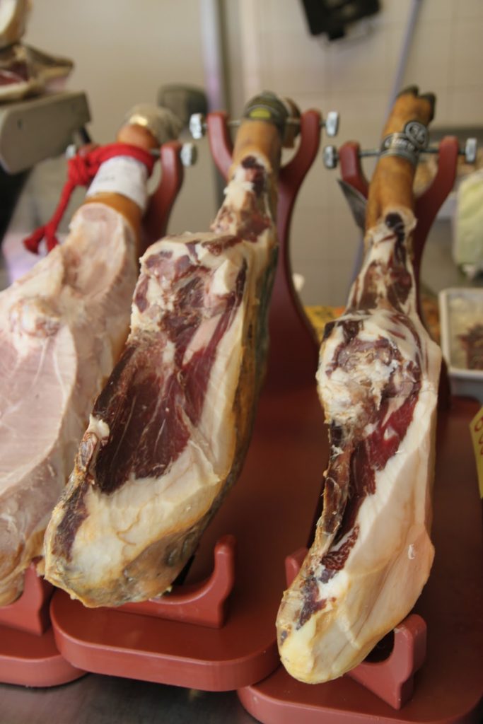 Partout dans la ville, on trouve des bars avec les fameux jambons suspendus.