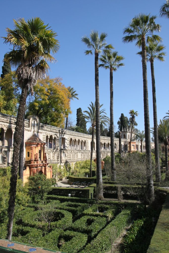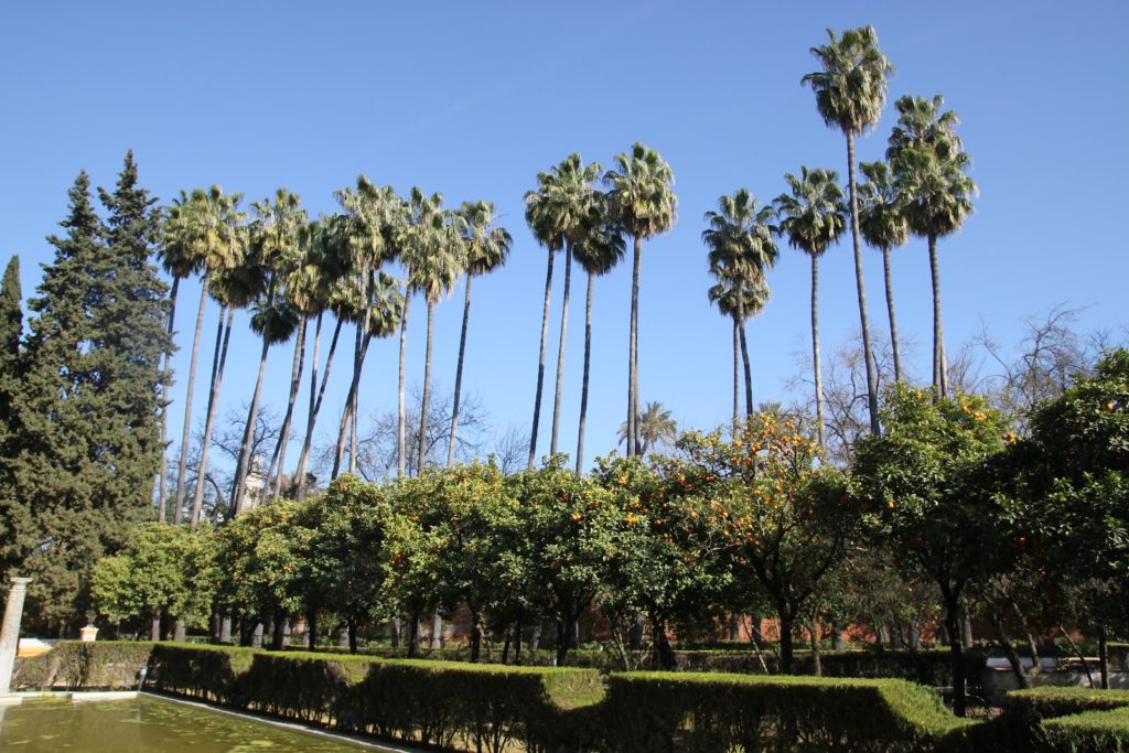 Cette photo représente pour moi assez bien l’ambiance de Séville: palmiers impériaux, orangers, ciel bleu…
