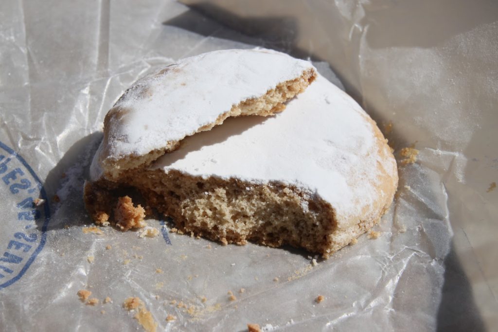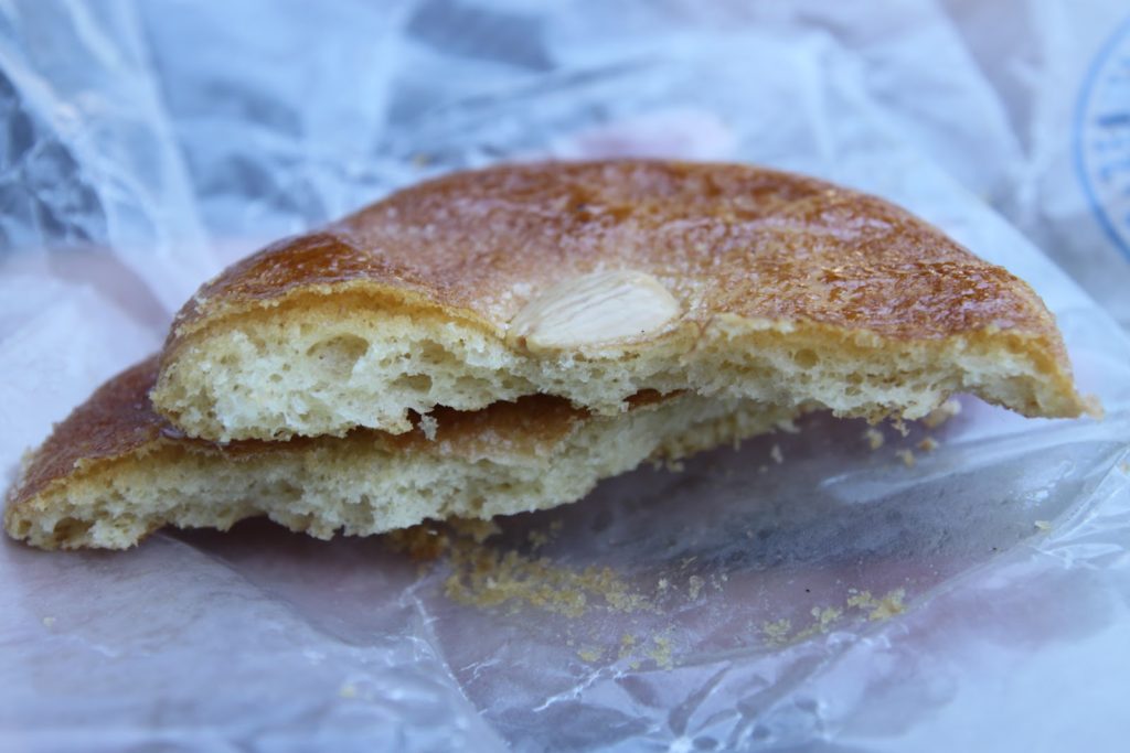Ils ne payaient pas de mine, j’ai donc été d’autant plus surpris par leur saveur surprenante. De l’huile d’olive, des amandes, de l’anis, du sucre… Dense mais très bon!