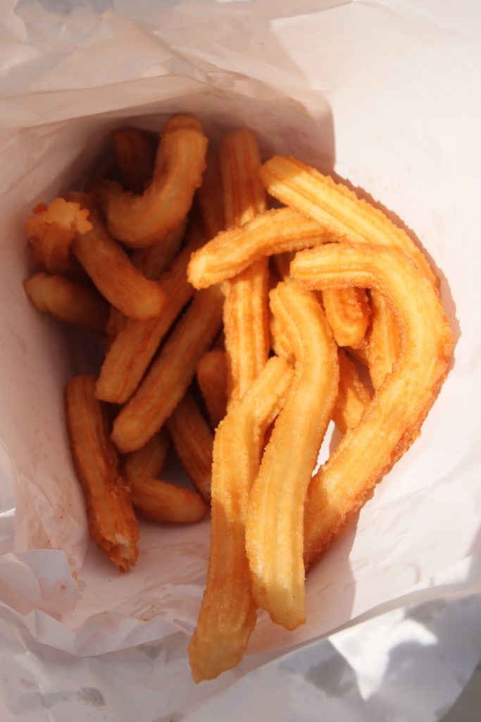 Victoire! Les churros sont en mains. Ils sont vendus au poids. Pas le choix, c’est minimum 250g!! Au moins, je ne manque pas d’énergie pour le reste de la journée.