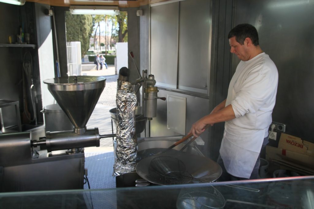Mais ce qui m’intéresse en face des remparts et qui n’est pas spécialement andalous, est le fameux beignet espagnol… Le petit kiosque, qui ferme l’après midi, ne désemplit jamais le matin.