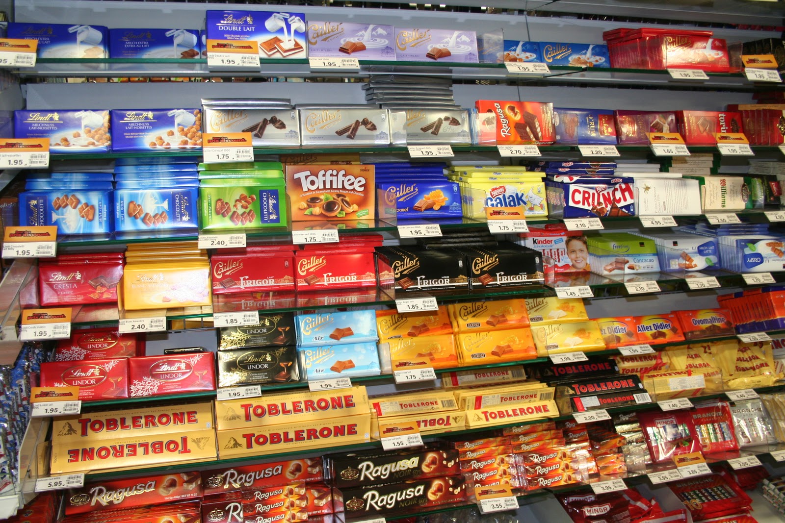 Et tout un rayon de chocolats suisses comme Lindt et surtout le moins connu Cailler.