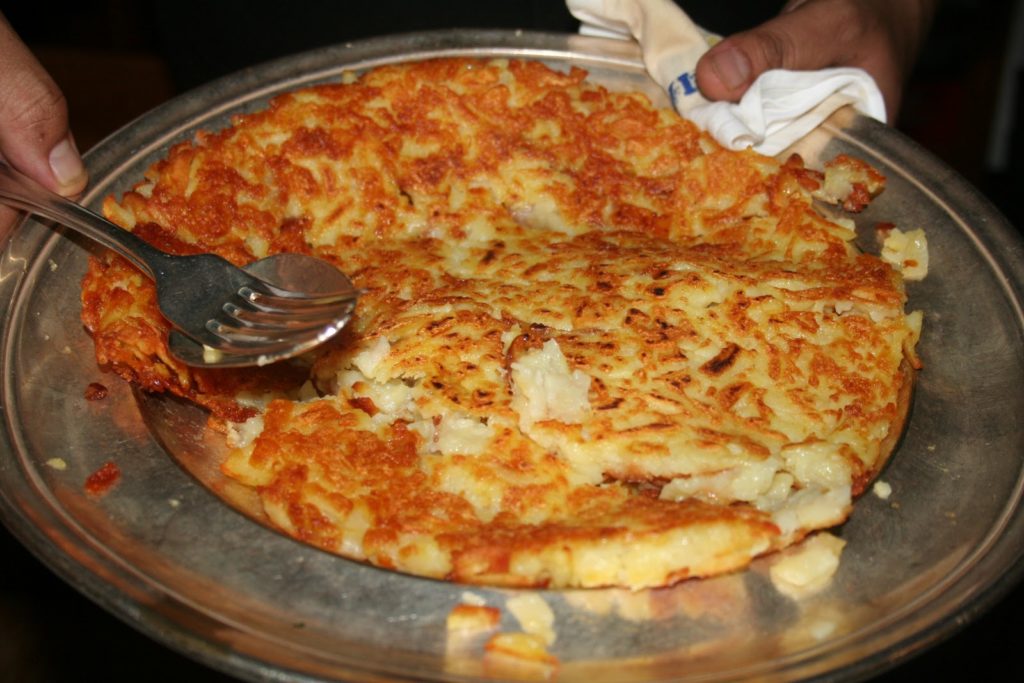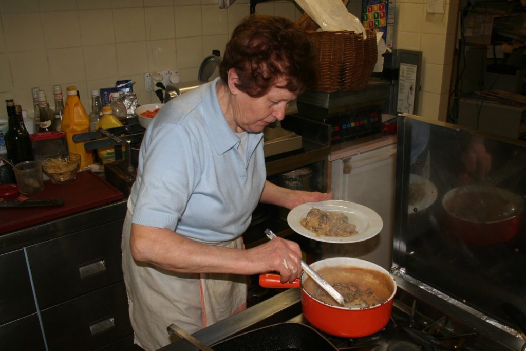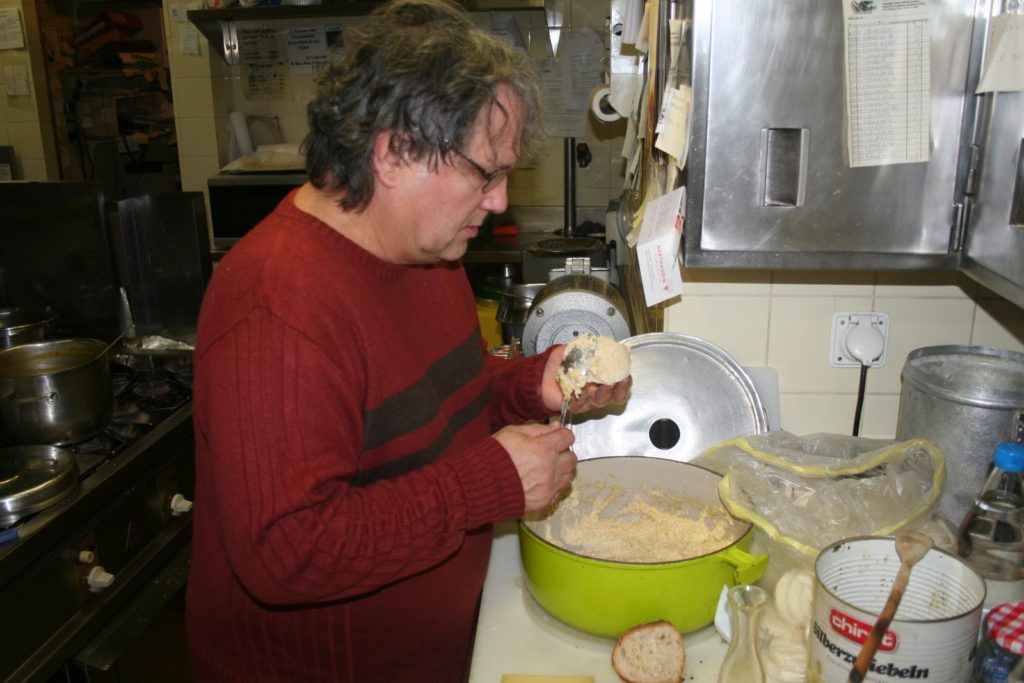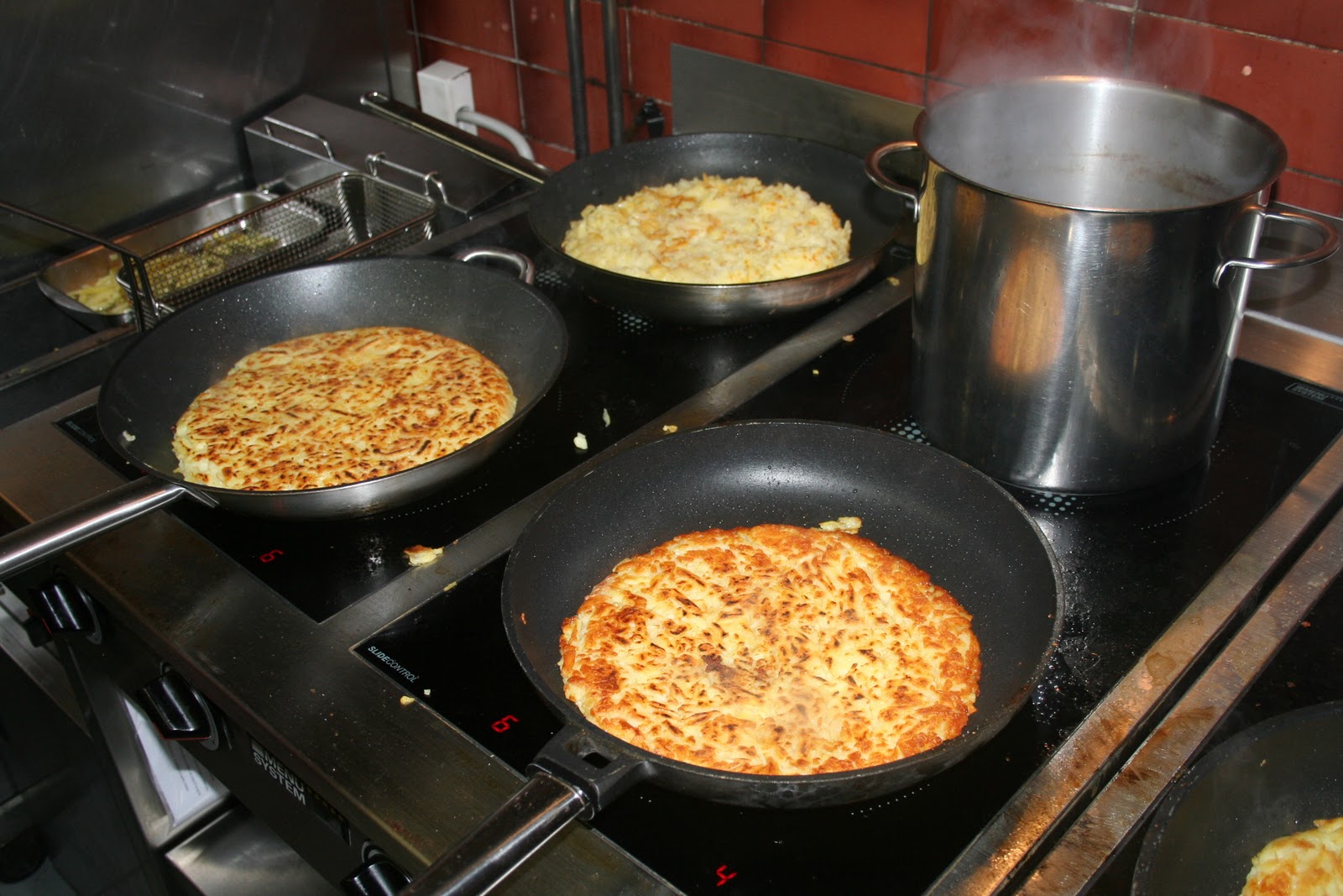 Je suis bien sûr allé en coulisses pour observer l’incroyable ballet de cuisiniers qui s’affairent sur les poêles où dorent les röstis. J’ai même fait un peu d’espionnage industriel (je plaisante, ils m’ont donné quelques trucs!) et j’ai donc découvert quelques secrets que je ne manquerai pas de vous transmettre.