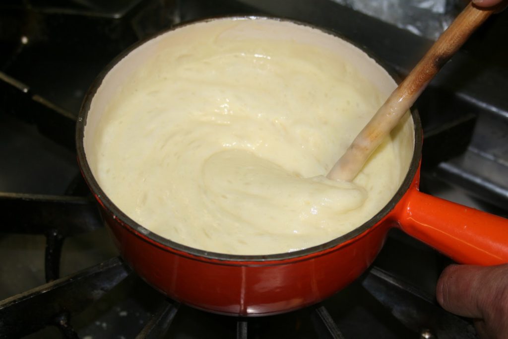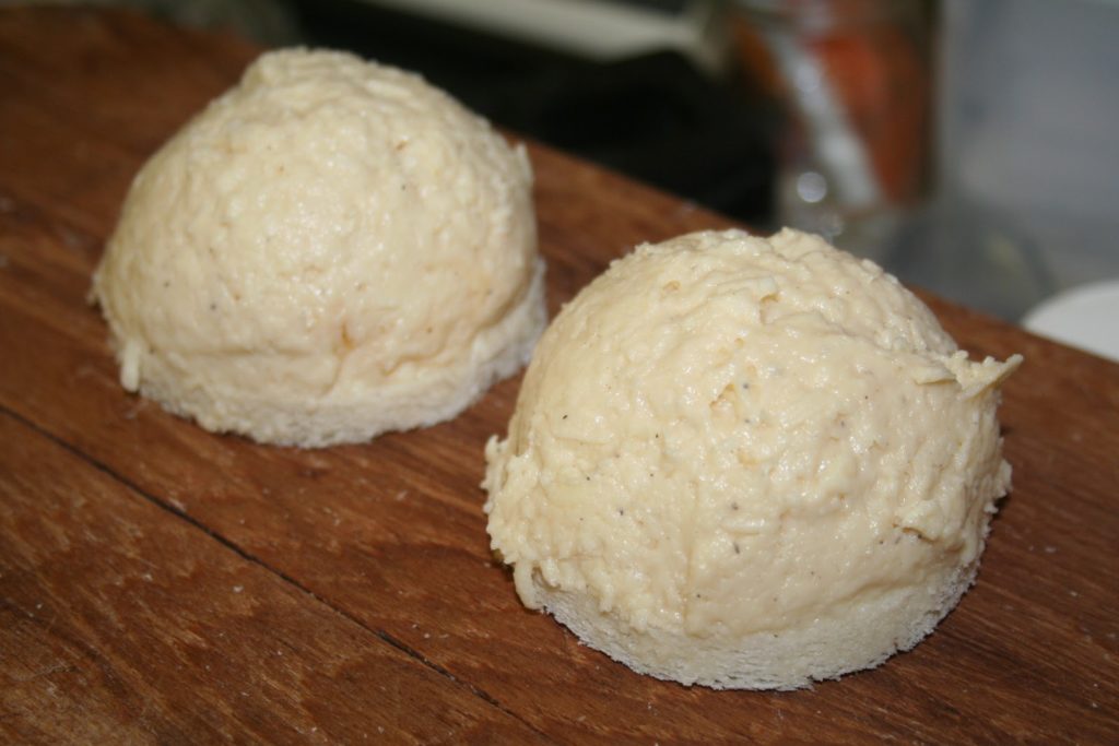Un coup de main expert et voici un cercle de pain de mie parfaitement garni d’un dôme de pâte au fromage (du Gruyère bien sûr!!).