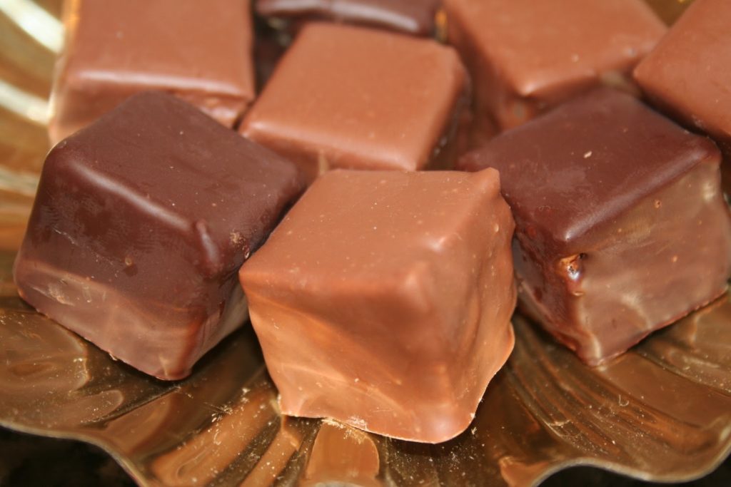 Ce sont des cubes de ganache au beurre aux amandes ou aux noisettes enrobés de chocolat au lait ou noir.