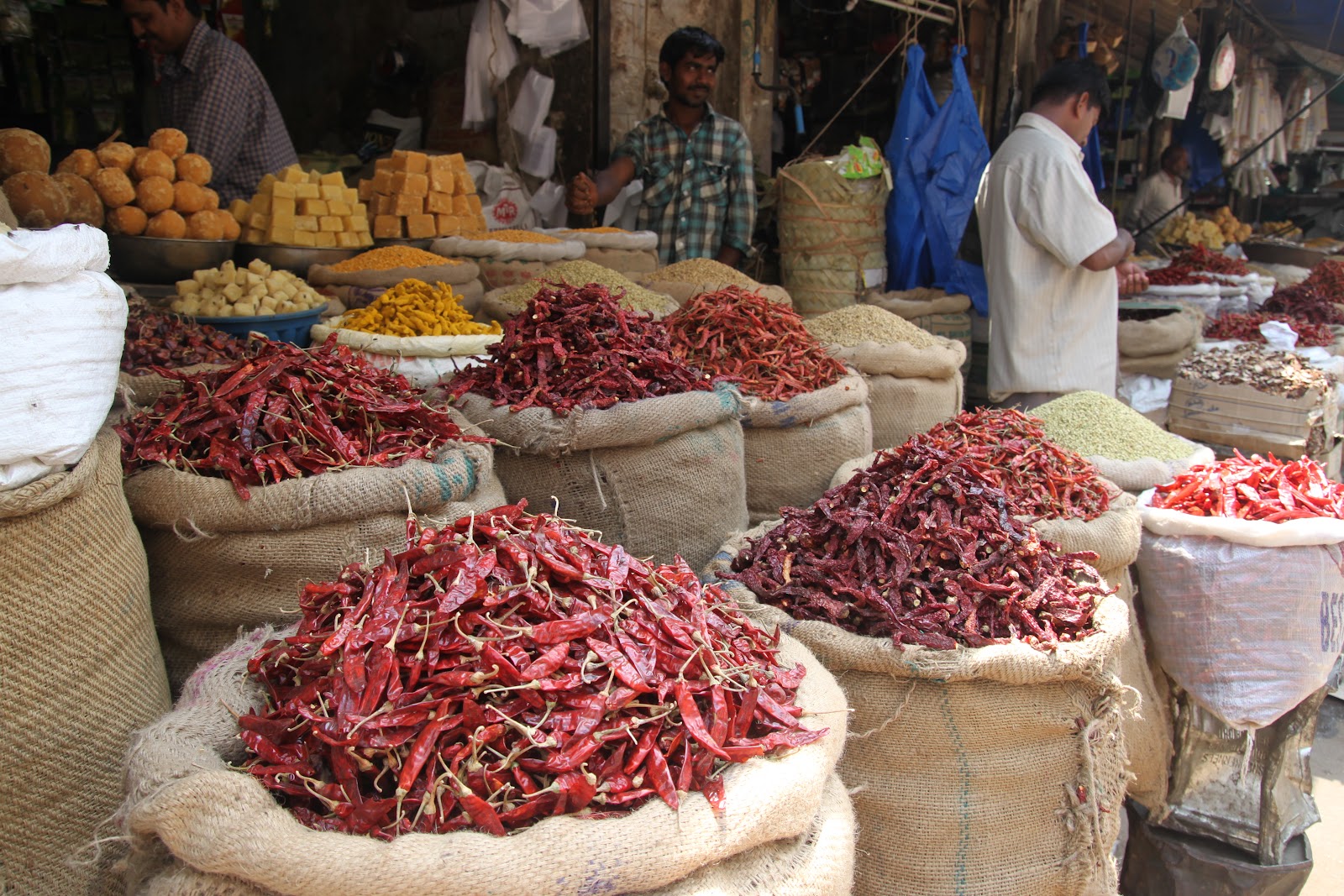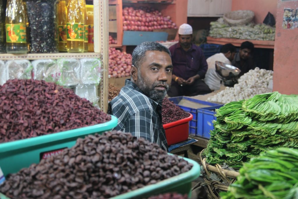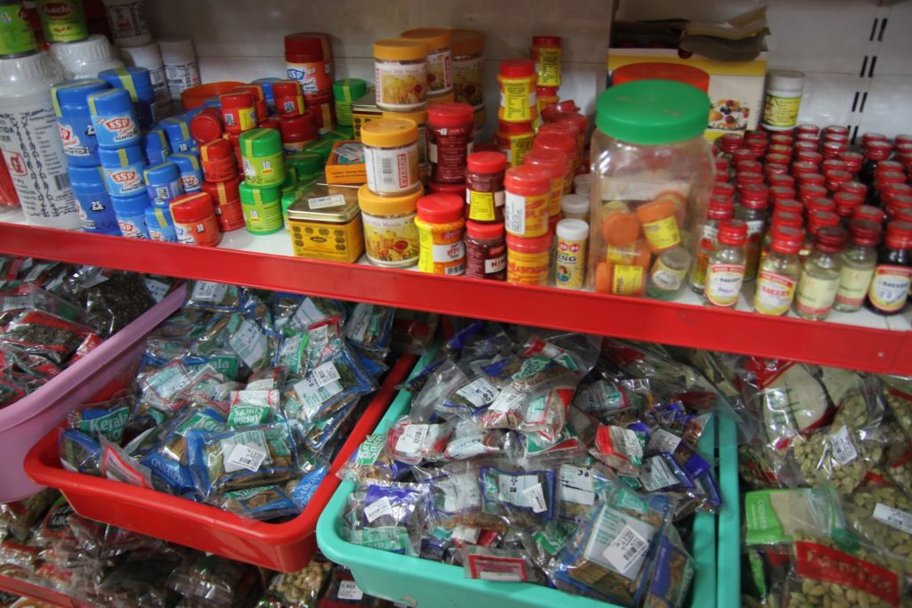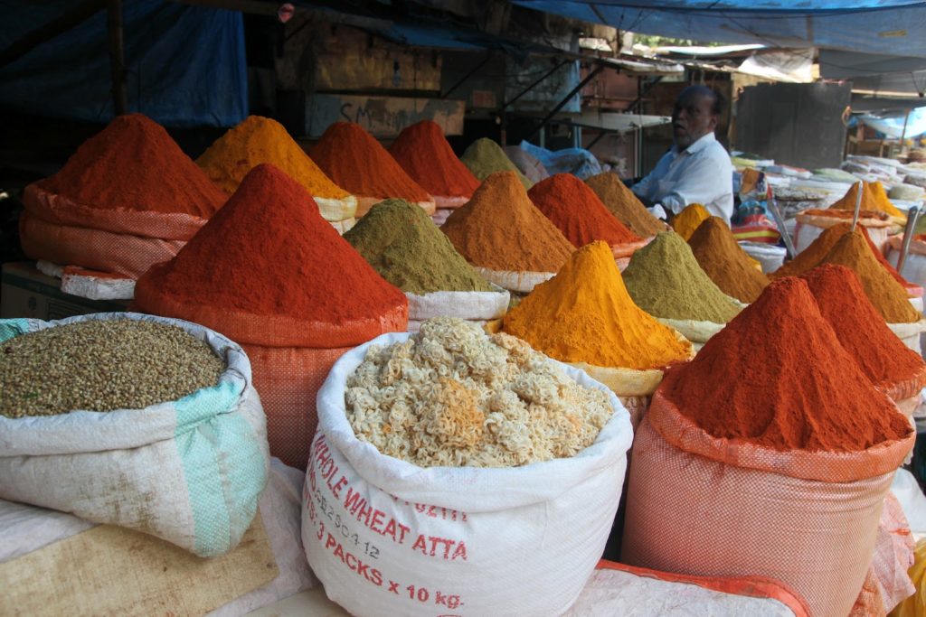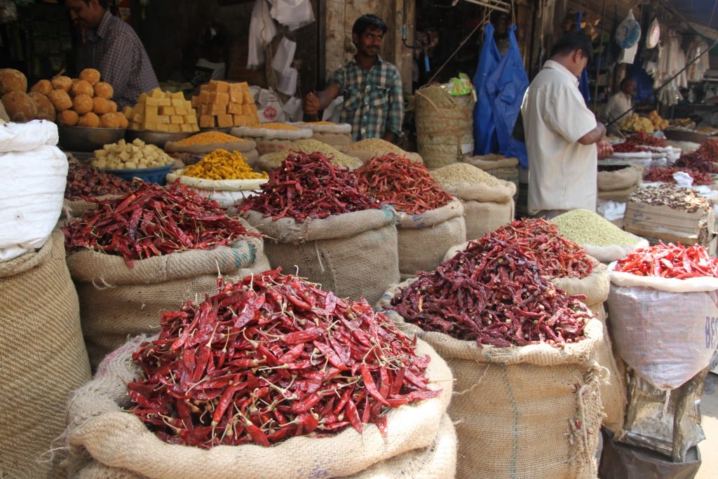 Tout aux alentours du marché, on trouve des ruelles pleines de boutiques, comme ce marchand d’épices et de piments.