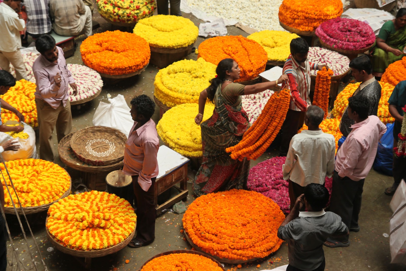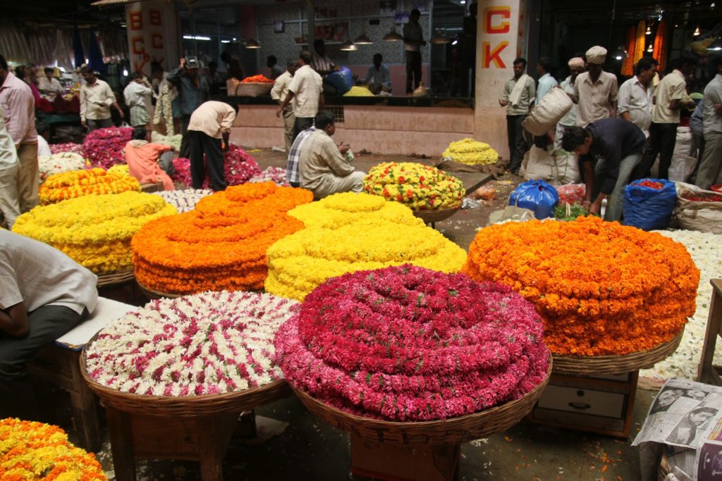 Il est vraiment incroyable de voir toutes ces guirlandes colorées et parfumées dans l’enceinte de ce grand marché.