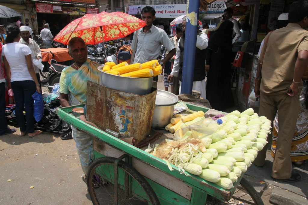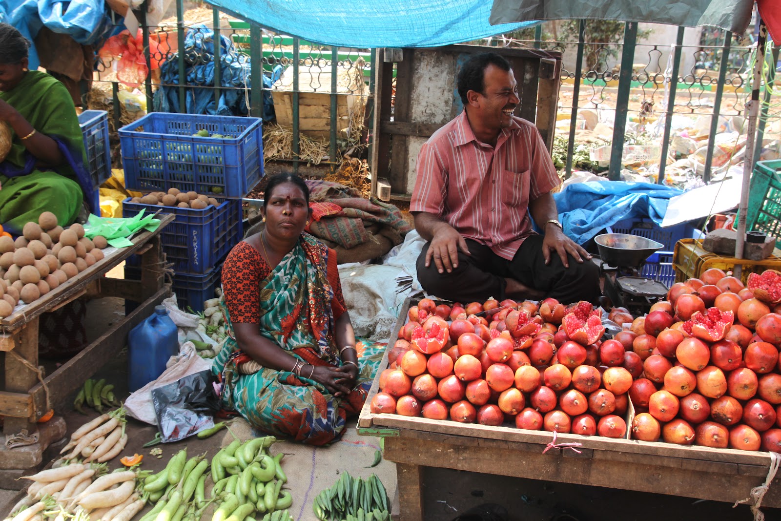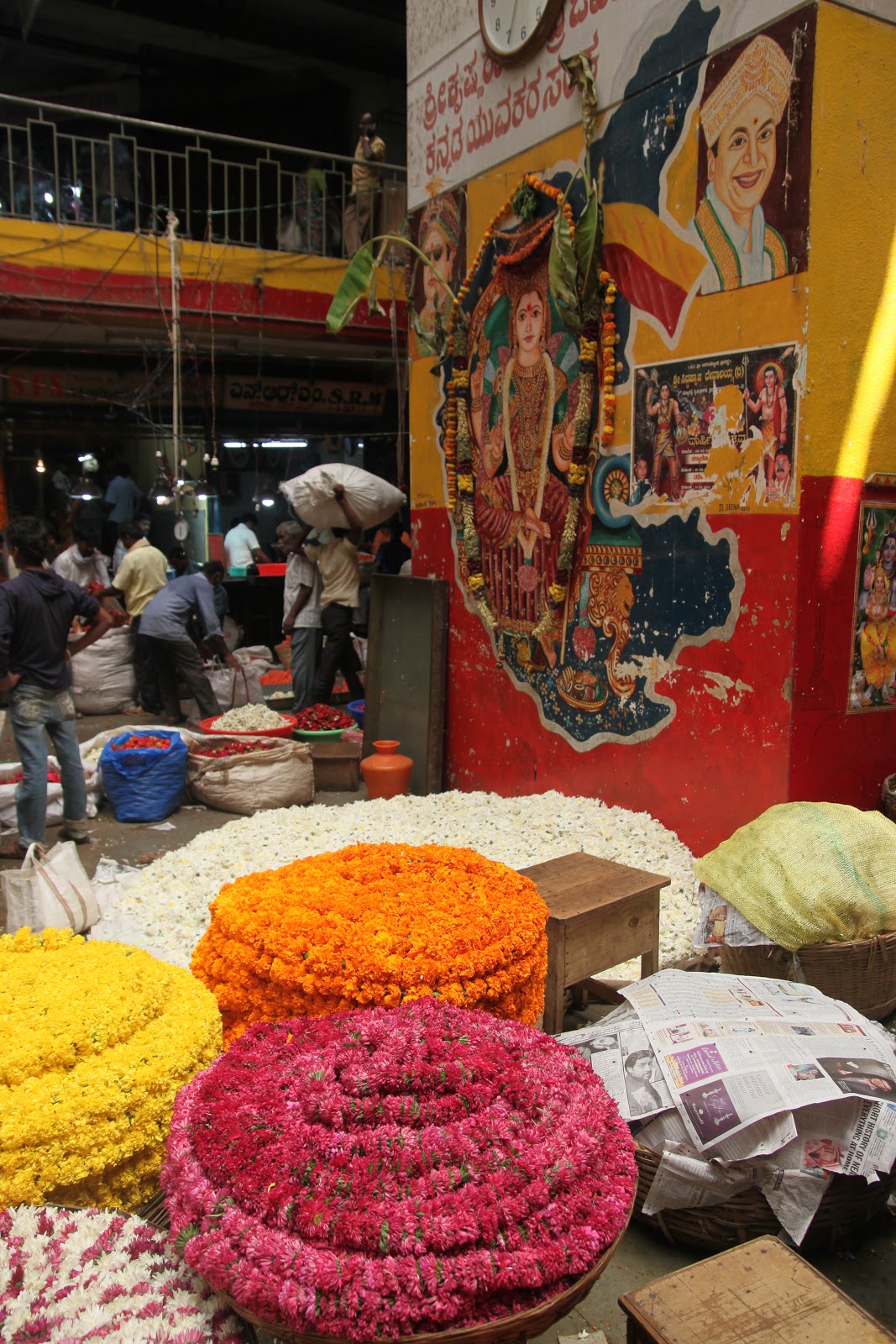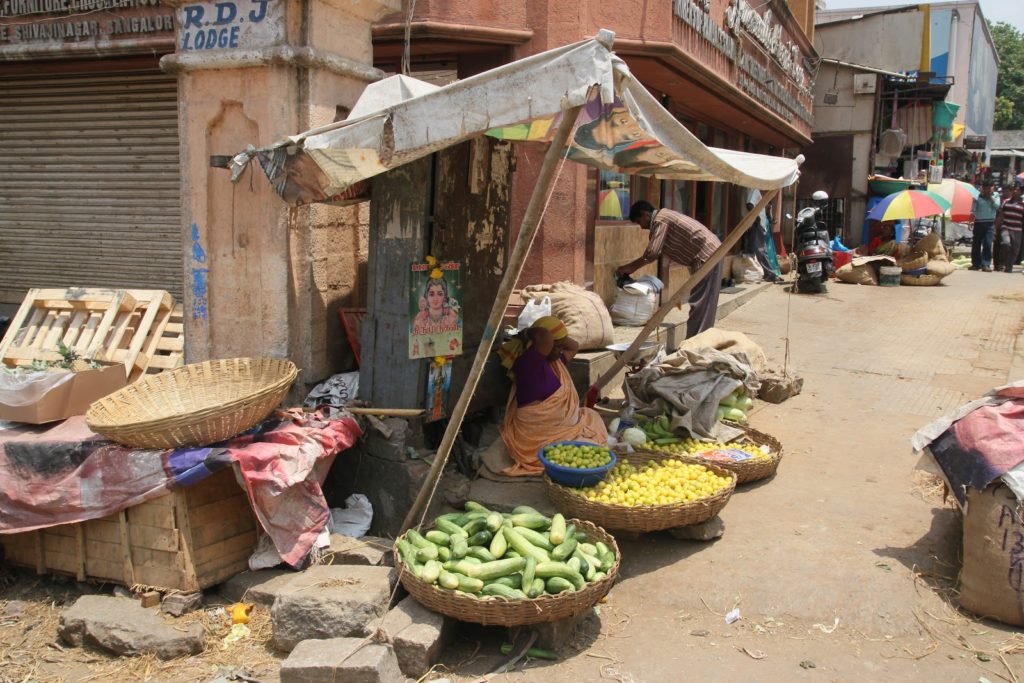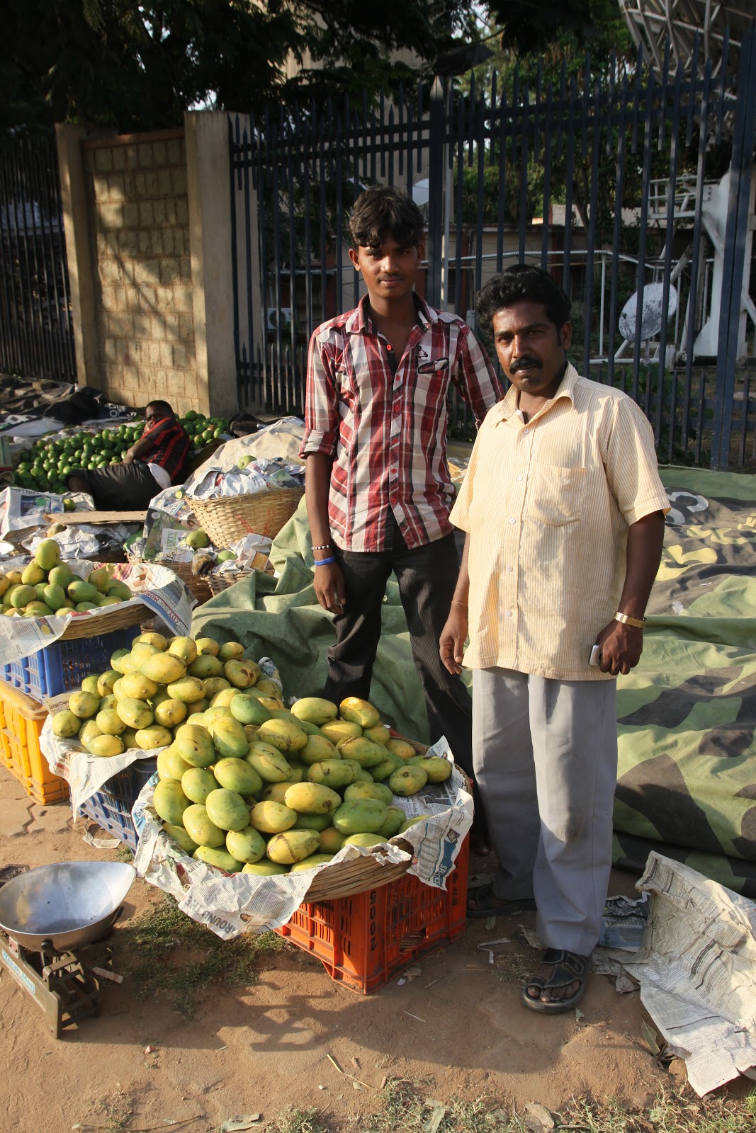 C’est un coin du monde que je ne connais pas bien et vous étiez très nombreux à me demander des recettes indiennes. Je me suis dit qu’il était temps d’y faire un petit tour et de faire un reportage sur les marchés de Bangalore. Je vous emmène cette fois en Inde, dans la chaleur des marchés de fruits et légumes. Vous verrez beaucoup de photos d’indiens qui vendent leurs produits, car ils voulaient tous être pris en photos pour voir le résultat sur le petit écran! Après ce voyage culinaire, je commencerai à aborder un peu la cuisine indienne avec quelques recettes…