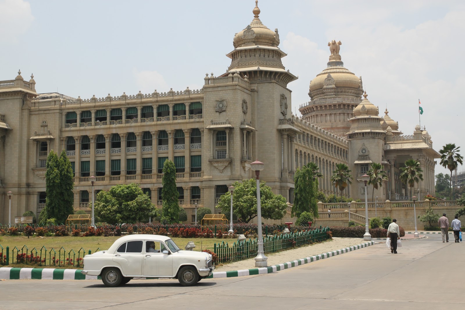 Il est temps de partir au marché de Russel. Pour s’y rendre, on peut faire un petit détour par le siège législatif de l’état de Karnataka: le Vidhana Sudha.