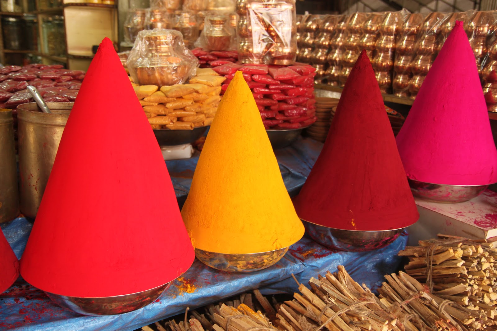 On trouve ces magnifiques cônes de couleurs, véritables montagnes, qui servent visiblement à dessiner des symboles sacrés.