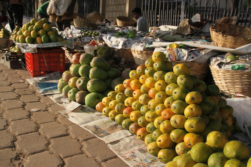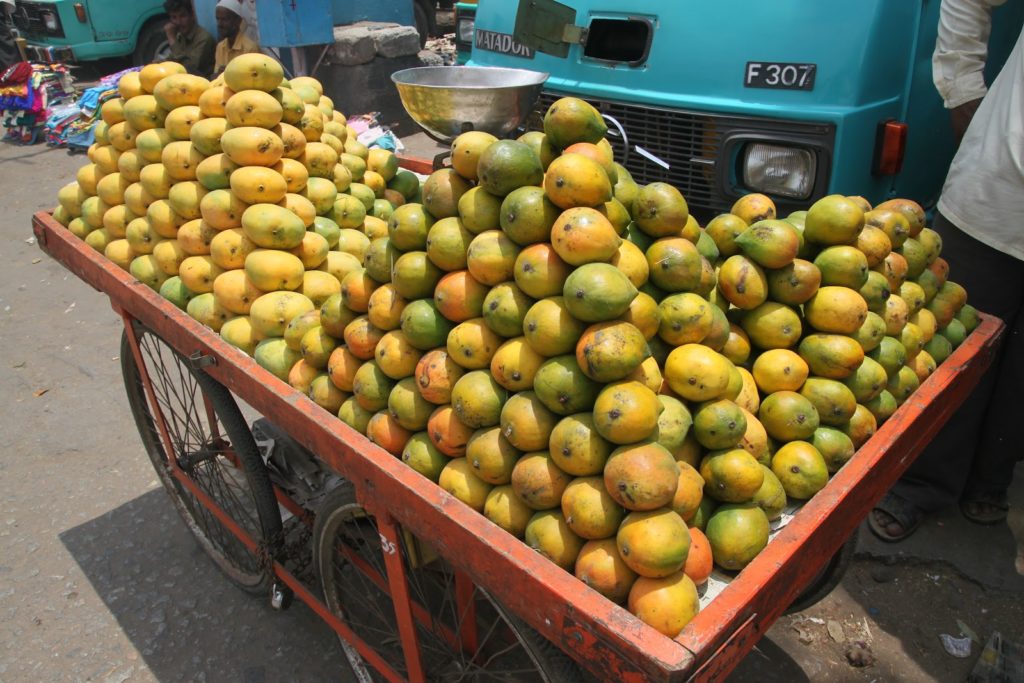 Dans la rue, dans mon « rickshaw », je repère un petit marché de mangues. Comme nous sommes au mois de mai (2012), c’est pile la saison des mangues!