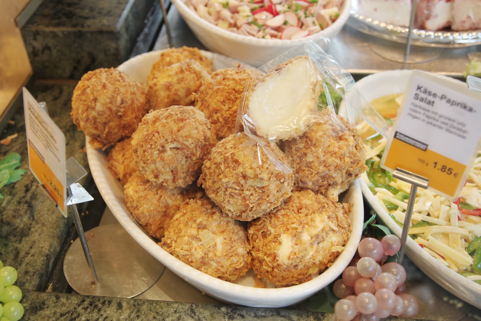 Dans un autre stand de fromagerie (???, c’est quoi ça Bernard?), bah oui c’est pas du fromage!, une sorte de boulette légère au fromage enrobée d’oignons frits!